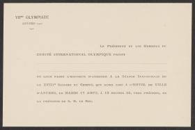 ProtagonistsComité International Olympique (CIO)Related objectsGuatemala 2007, official badge of the IOC 119th session for Kurt Furgler.Torino 2006, poster from the Athletes' Commission.Beijing 2008, poster from the Athletes' Commission.Created: Hai HANG ...London 1908, badge of the International Olympic Committee for the Games.Created: VaughtonSydney 2000, license plate for Olympic vehicles with the Games' emblem.Created: Sydney Organising Committee for the Olympic Games ...Varna 1973, official badge of the 10th Olympic congress, white ribbon (IOC member)Created: Luben OROSOV ...London 1908, badge of the International Olympic Committee for the Games.Created: VaughtonSHAHABUDDIN, Amhed. Suite: Olympic Centennial. Three runners.Created: BO 15, Barcelone ...Athens 2004, official badge of the IOC 116th session, red ribbon (Olympic Games Organising Committee).Guatemala 2007, official badge of the IOC 119th session for Pernilla Wiberg.Symbolically represented: Pernilla WIBERGGuatemala 2007, official badge of the IOC 119th session for Barbara Kendall.Symbolically represented: Barbara KENDALLRome 1960, merit diploma awarded to the IOC.Symbolically represented: Comité International Olympique (CIO)New Delhi 1983, guest badge of the 86th IOC Session.Created: Comité International Olympique (CIO)Cortina d'Ampezzo 1956, official badge of the head of mission worn by Juan Antonio Samaranch.Created: Franco RONDINELLI ...Beijing 2008, pocket guide of the IOC communications departement.Created: Comité International Olympique (CIO)Seoul 1986, official badge for the Vth General Assembly of the National Olympic Committees.Created: Comité International Olympique (CIO) ...Berlin 1936, invitation to dinner given to the International Olympic Committee by the Organizing Committee.Symbolically represented: Comité International Olympique (CIO) ...Albertville 1992, sign signaling the IOC office.Symbolically represented: Comité International Olympique (CIO)Athens 2004, poster from the Athletes' Commission.Symbolically represented: Comité International Olympique (CIO) ...London 1948, Olympic Bell badge of the XIVth Olympic Games.Created: Comité International Olympique (CIO)Innsbruck 1964, badge of the IX Olympic Winter Games.Created: Comité International Olympique (CIO)Abidjan 1977, Juan Antonio Samranch's badge of the meeting between the IOC executive board and the National Olympic Committees.Created: Comité International Olympique (CIO)Tokyo 1964, head of mission badge of the XVIII Olympic Games.Created: Comité International Olympique (CIO) ...Berlin 1936, menu of the banquet given by the Organizing Committee to the IOC.Symbolically represented: Comité International Olympique (CIO)Munich 1971, Juan Antonio Samaranch's official badge for the General Assembly of the National Olympic Committees.Created: Comité International Olympique (CIO) ...Innsbruck 1964, commemorative diploma awarded to the International Olympic Committee.Created: Arthur ZELGER (31.03.1914) ...Nagano 1998, Juan Antonio Samaranch's official session badge for the 107th IOC Session.Created: Comité International Olympique (CIO) ...Nagano 1998, security pass for doping control.Created: Nagano Organizing Committee ...New Delhi 1983, official badge of the 86th IOC Session, white ribbon.Created: Comité International Olympique (CIO)Tokyo 1964, "N.O.C" badge of the XVIII Olympic Games.Created: Comité International Olympique (CIO)Tokyo 1964, official badge of the 63rd IOC Session.Created: Comité International Olympique (CIO)Nagano 1998, sign for the IOC Athletes Commission Office.Created: Comité International Olympique (CIO) ...Amsterdam 1928, briefcase of baron Godefroy de Blonay, member of the International Olympic Committee.Created: Comité International Olympique (CIO) ...Lisbon 1998, commemorative Medal for the World's Fair.Symbolically represented: Comité International Olympique (CIO)Rome 1920, Merit diploma from the Italian Olympic Committee awarded to the IOC.Symbolically represented: Comité International Olympique (CIO) ...Stockholm 1912, official insigne for the IOC.Used: Comité International Olympique (CIO) ...Tokyo 1964, official badge of the 63rd IOC Session.Created: Comité International Olympique (CIO)Berlin 1936, table plan of the banquet given by the Organizing Committee to the IOC.Symbolically represented: Comité International Olympique (CIO)Tokyo 1964, official badge of the 63rd IOC Session.Created: Comité International Olympique (CIO)Singapore 2010, "Thank you" badge.Created: Comité International Olympique (CIO)Saint-Moritz 1948, commemorative diploma awarded to the International Olympic Committee.Symbolically represented: Comité International Olympique (CIO) ...Helsinki 1952, "NOC" Badge.Created: Comité International Olympique (CIO) ...Nagano 1998, sign for the IOC Shared Meeting Room.Created: Nagano Organizing Committee ...Beijing 2008, voting banner for the International Olympic Committee athletes' commision.Symbolically represented: Comité International Olympique (CIO) ...Munich 1972, badge of the I.O.C. members for the XX Olympic Games..Created: Comité International Olympique (CIO) ...Amsterdam 1928, IOC badge.Symbolically represented: Comité International Olympique (CIO) ...Rome 1965, Juan Antonio Samaranch's function badge for the 1st General Assembly of the Olympic National Committees.Created: Comité International Olympique (CIO) ...Tokyo 1964, badge of the 63rd IOC Session.Created: Comité International Olympique (CIO)Calgary 1988, badge of the XV Winter Olympic Games.Created: Comité International Olympique (CIO)Grenoble 1968, badge of the I.O.C. members for the Xth Olympic Games.Created: Arthus-Bertrand ...Blank certificate to be awarded by the IOC to an Olympic numismatic association.Created: Comité International Olympique (CIO)MYSLEBEK, J. V. Replica of the statue of Saint Wenceslas.Symbolically represented: Comité International Olympique (CIO) ...Blank certificate to be awarded by the IOC for 