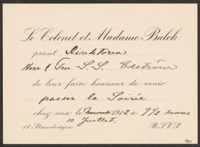 ProtagonistsViktor Gustav BALCKCountriesSwedenRolesIOC memberFrom … To25.4.1844 - 31.5.1928Related objectsStockholm 1912, invitation card to diner July 5th from the Colonel and Mrs. Balck to the Baron and Baroness Madam Godefroy de Blonay.Symbolically represented: Viktor Gustav BALCK ...Stockholm 1912, invitation card to the evening July 10th from the Colonel and Mrs. Balck to the Baron and Baroness Madam Godefroy de Blonay.Symbolically represented: Viktor Gustav BALCK ...Stockholm 1912, invitation card to the evening July 10th from the Colonel and Mrs. Balck to Mr. and Mrs. JS Edström.Symbolically represented: Viktor Gustav BALCK ...Stockholm 1912, invitation card to the evening July 5th from the Colonel and Mrs. Balck to Mr. and Mrs. JS Edström.Symbolically represented: Viktor Gustav BALCK ...Antwerp 1920, card given by Viktor Balck to Baron Pierre de Coubertin.Used: Pierre de COUBERTIN ...Antwerp 1920, guest book presented to Henri de Baillet-Latour and signed by IOC members.Used: Pierre de COUBERTIN ...Large medallion featuring General Viktor Balck, one of the first IOC members.Created: Godefroid DEVREESE ...