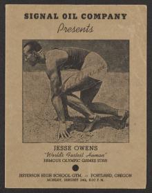 ProtagonistsJesse OWENSAlso known asOWENS James ClevelandCountriesUnited States of AmericaRolesOlympic athleteFrom … To12.9.1913 - 31.3.1980https://www.olympedia.org/athletes/78869Related objectsBerlin 1936, Dassler shoe worn by Jesse Owens (USA), four-time Olympic champion.Created: Adidas sport GmbH ...Autographs of Ralph METCALFE, Eulace PEACOCK and Jesse OWENS (USA).Symbolically represented: Jesse OWENS (12.9.1913) ...Los Angeles 1984, vignette with a photography of Jesse OWENS (USA).Visually represented: Jesse OWENS (12.9.1913)Berlin 1936, figurine of James Cleveland "Jesse" OWENS (USA), Olympic Champion.Created: Kenner ...Portland 1938, program signed by Jesse OWENS (USA).Created: Signal Oil Company ...Berlin 1936, commemorative medal with the portrait of Jesse OWENS (USA).Created: The Franklin Mint ...Berlin 1936, commemorative medal representing Jesse OWENS (USA).Created: The Franklin Mint ...Berlin 1936, commemorative medal with the portrait of Jesse OWENS (USA), presented to Lord Killanin.Created: The Franklin Mint ...Berlin 1936, advertisement card for cough syrup with Olympic champions.Visually represented: Jesse OWENS (12.9.1913) ...Film poster, "Race", Berlin 1936.Symbolically represented: Jesse OWENS (12.9.1913)Munich 1972, signatures book compiled by Uwe RATHJEN (FRG).Symbolically represented: Avery BRUNDAGE ...Replica of a Dassler shoe worn by Jesse Owens (USA), four-time Olympic champion, Berlin 1936.Created: Adidas sport GmbH ...JAMIN, David. Jesse Owens.Visually represented: Jesse OWENS (12.9.1913) ...