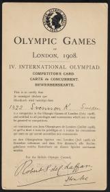 ProtagonistsKarl Johan SVENSSONCountriesSwedenRolesOlympic athleteFrom … To12.3.1887 - 20.1.1964https://www.olympedia.org/athletes/31132Related objectsLondon 1908, winner's diploma, 1st, awarded to Karl Johan SVENSSON (SWE), gymnastics.Created: Bernard PARTRIDGE ...London 1908, competitor's card of Karl Johan SVENSSON (SWE), artistic gymnastics team Olympic champion.Used: Karl Johan SVENSSON (12.3.1887)