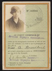 ProtagonistsAnnie BROADBENTCountriesGreat BritainRolesOlympic athleteFrom … To9.6.1908 - 14.1.1996https://www.olympedia.org/athletes/28430Related objectsAmsterdam 1928, winner's medal, bronze, awarded to Annie BROADBENT (GBR), medallist in artistic gymnastics team competition.Created: Giuseppe CASSIOLI ...Amsterdam 1928, identity card issued for Annie BROADBENT (GBR).Used: Annie BROADBENTAmsterdam 1928, patch of the British team having belonged to Annie BROADBENT (GBR).Used: Annie BROADBENTAmsterdam 1928, patch of the British gymnastics team having belonged to Annie BROADBENT (GBR).Used: Annie BROADBENT