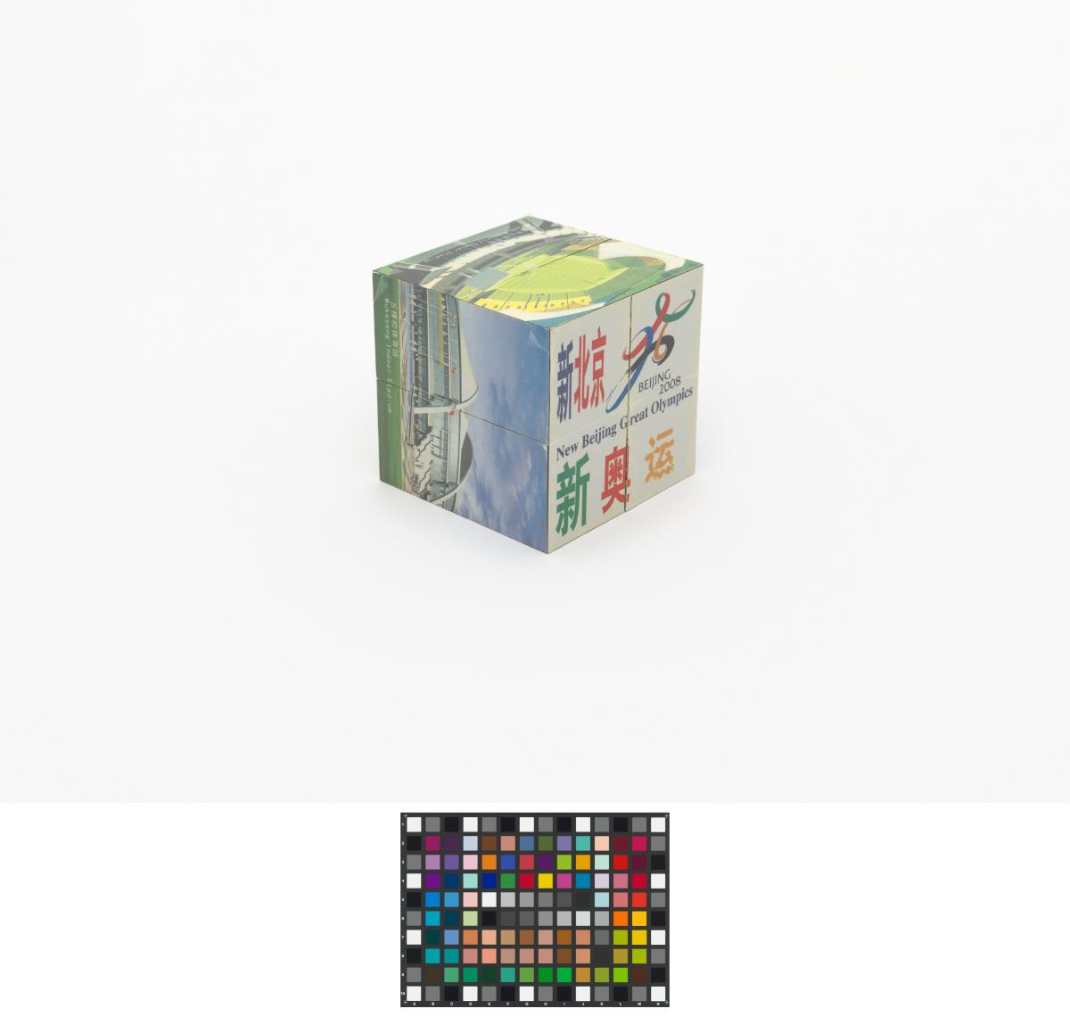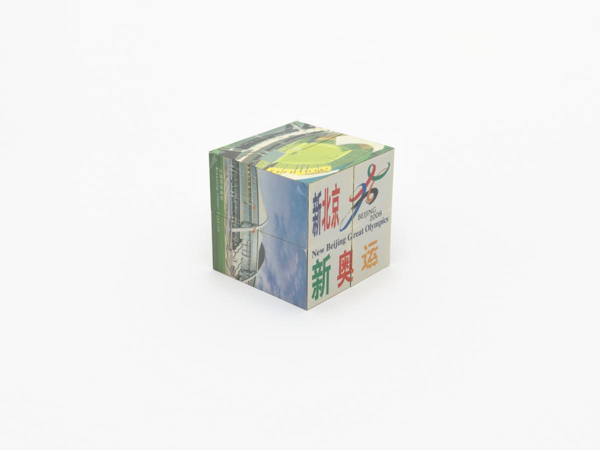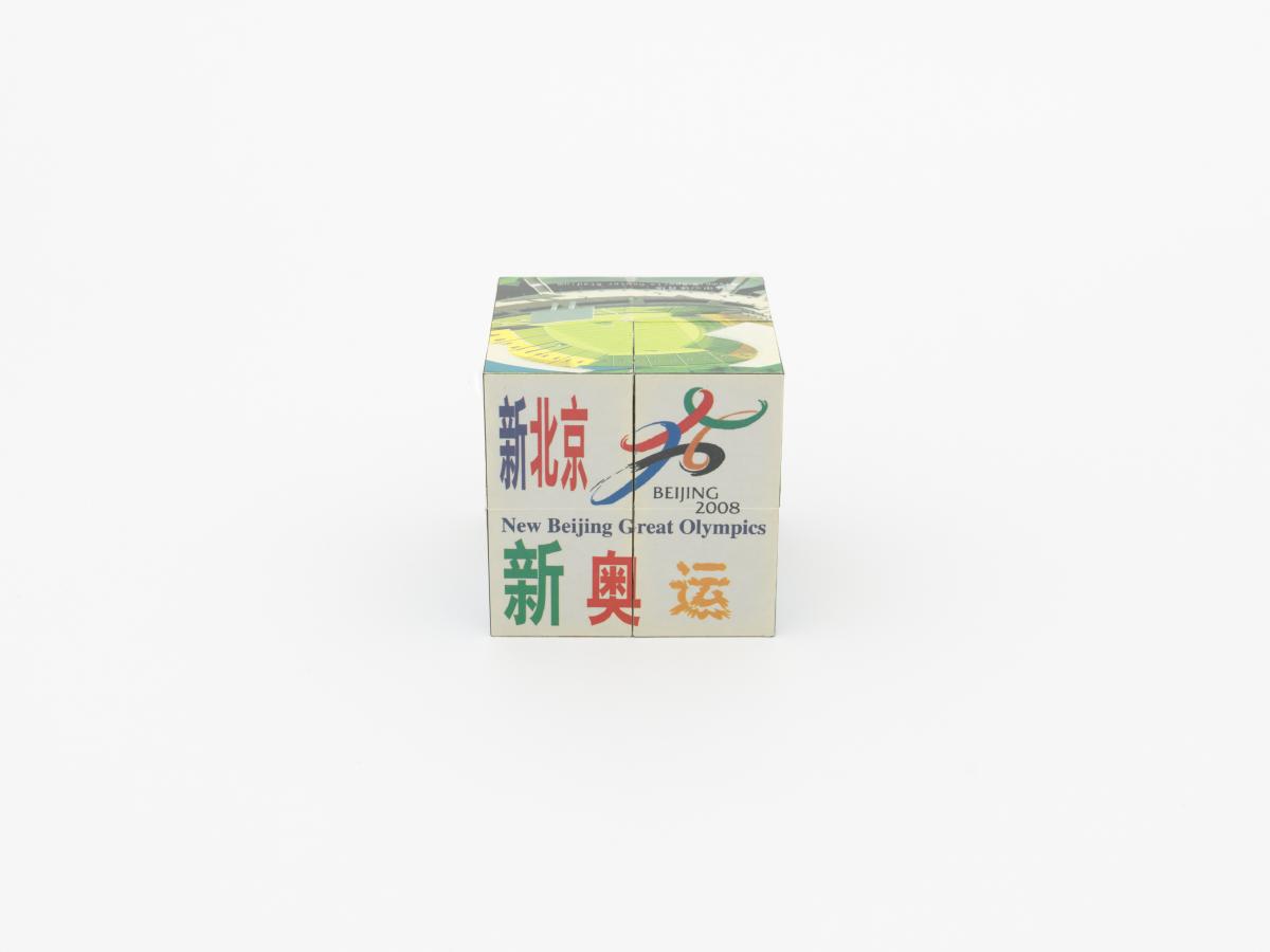 3D puzzle composed of 8 cubes. Candidature Emblem and motto: "New Beijing, Great Olympics".