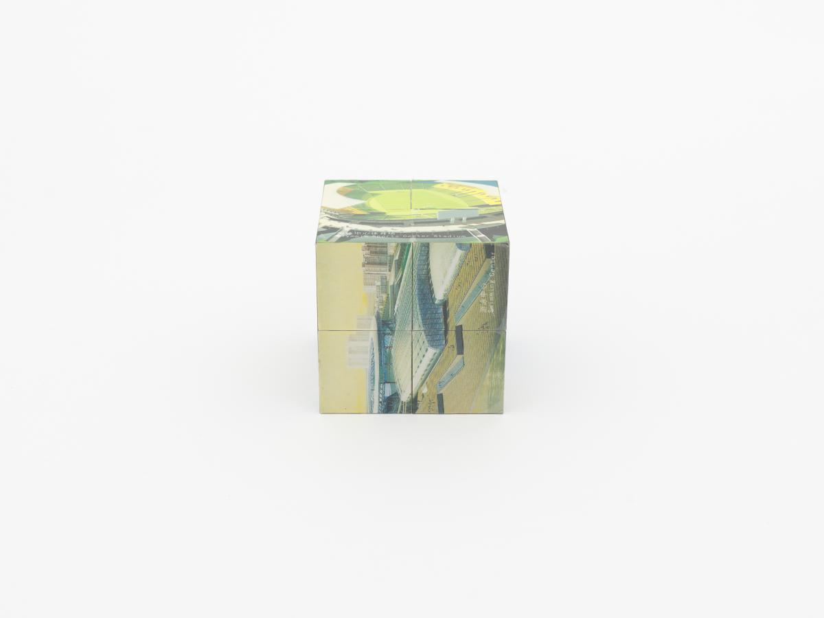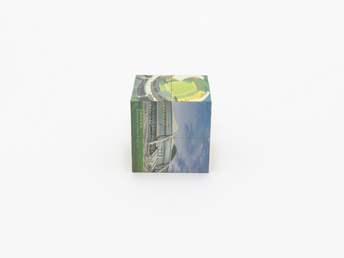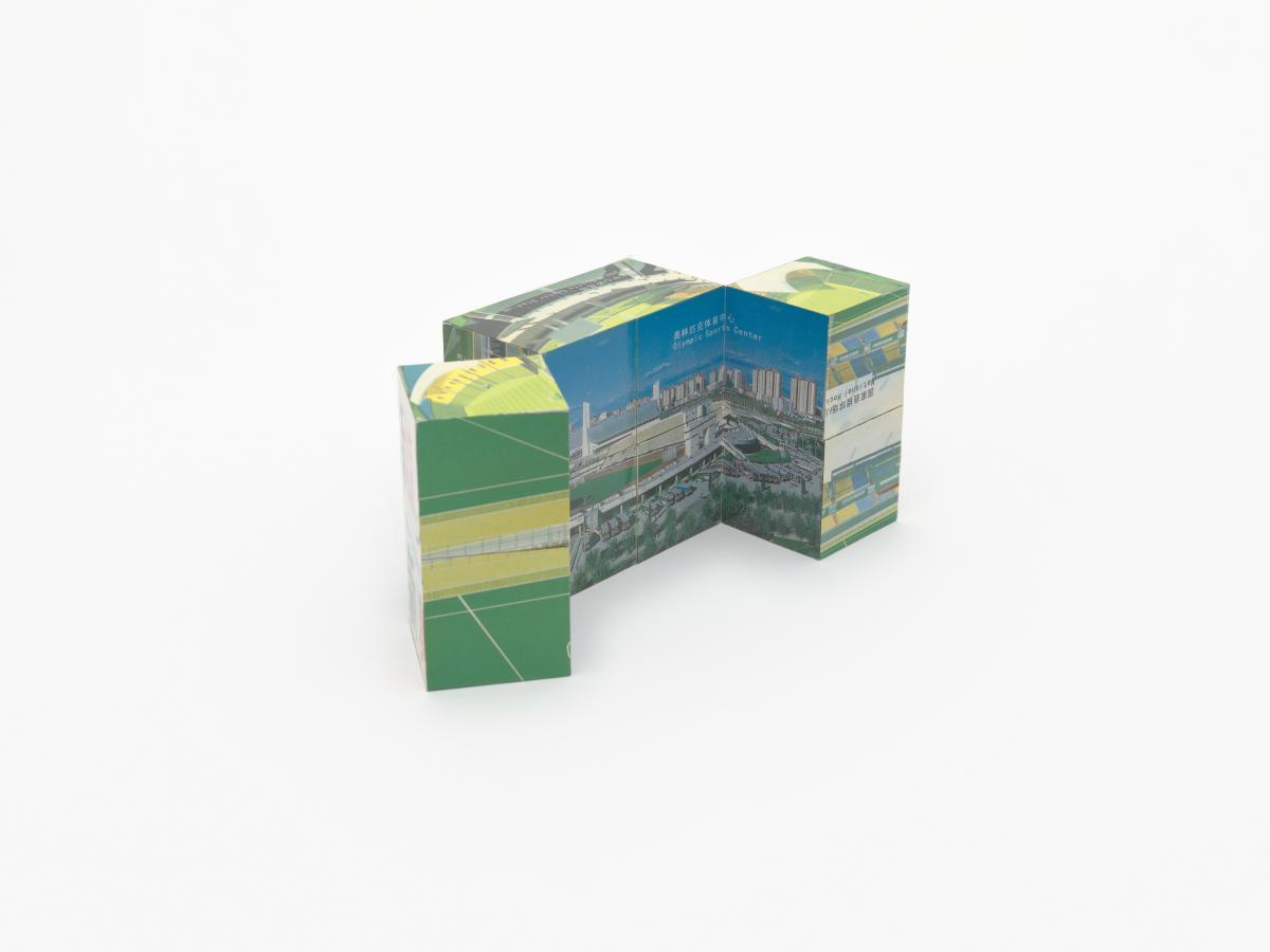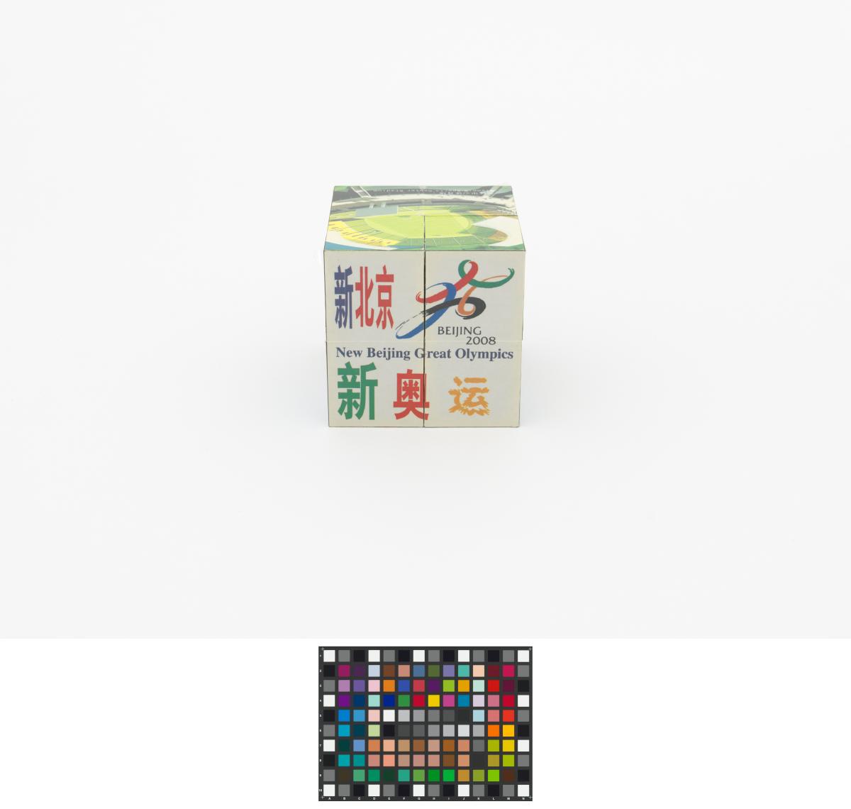 3D puzzle composed of 8 cubes. Candidature Emblem and motto: "New Beijing, Great Olympics".