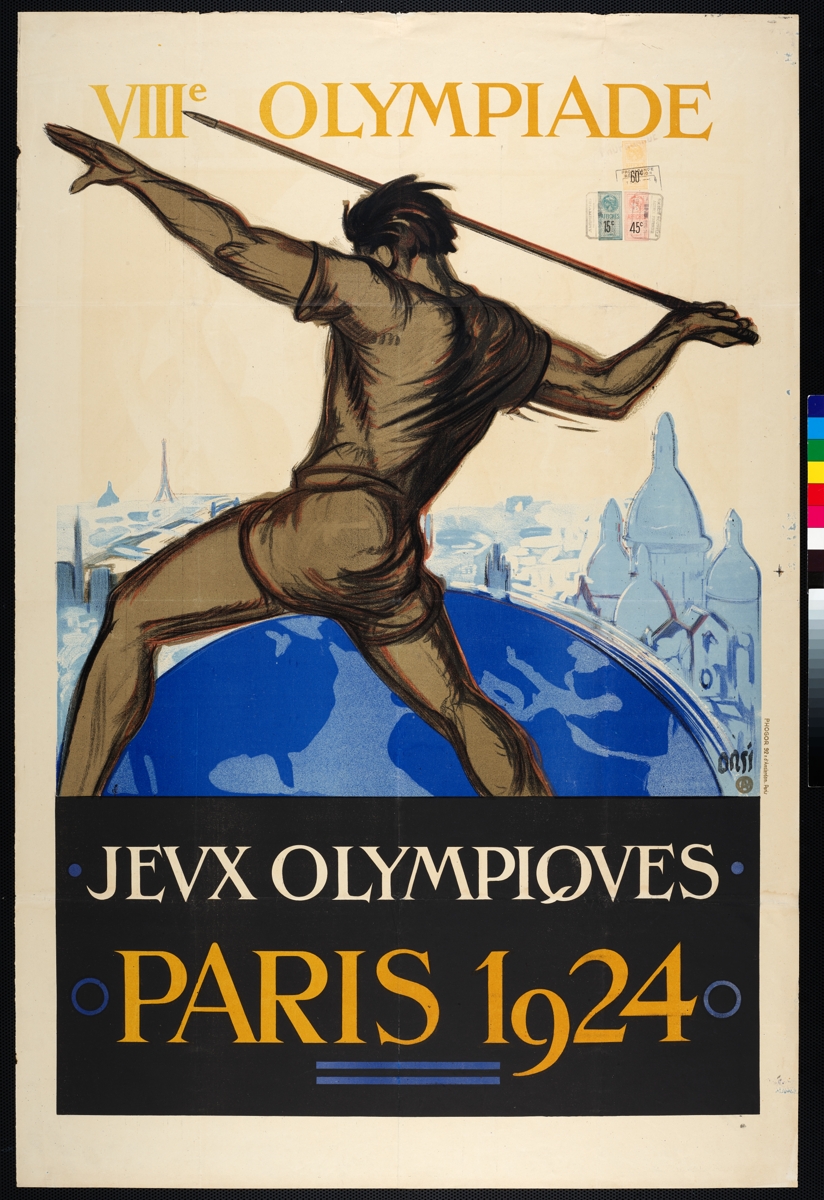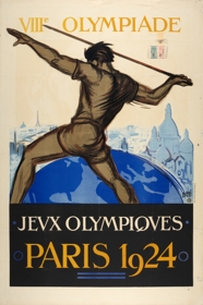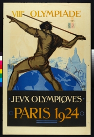 Among the 150 designs received by the Organising Committee, two were selected and used to promote the Games: one by Jean Droit and one by Stephano Orsi. The image created by Jean Droit depicts a group of athletes evoking unity and heroic firmness. By contrast, Orsi's composition alludes to the idea of the international dimension of this sporting competition, where different symbols are combined to form a complex image, a javelin thrower facing the world and a view of Paris encompassing the Sacré Coeur and the Eifel Tower. The two posters were printed in runs of 10,000 copies each, more than half of which went abroad.