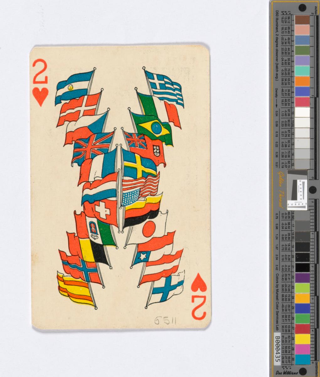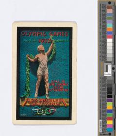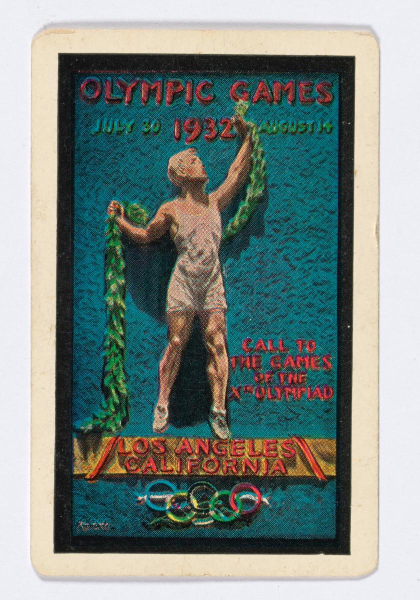 Los Angeles 1932, game card (the two of hearts) with 22 flags and the official poster.
