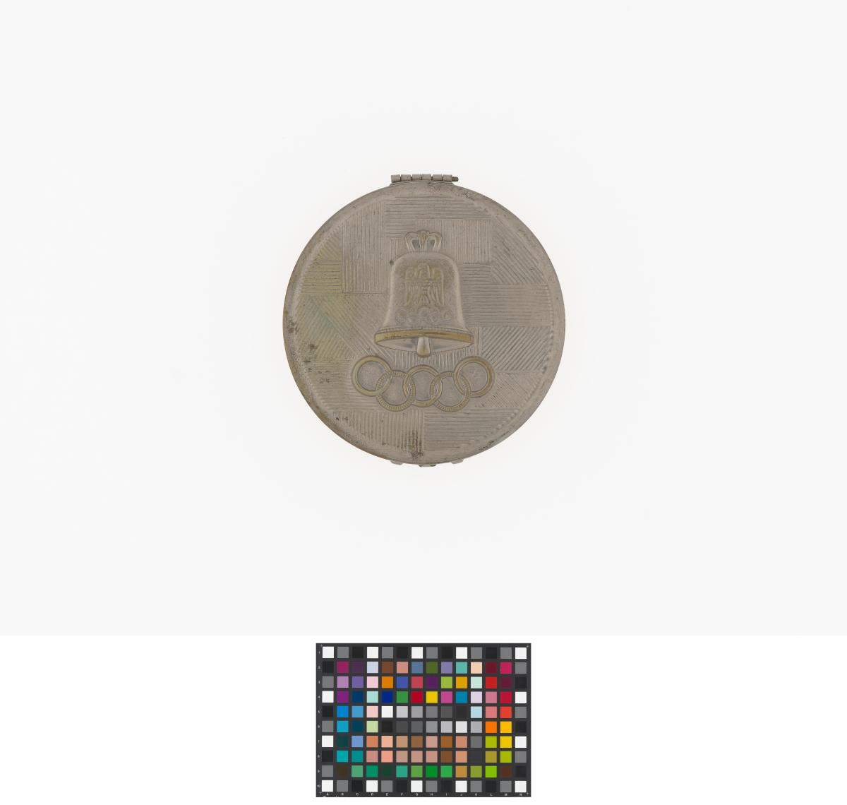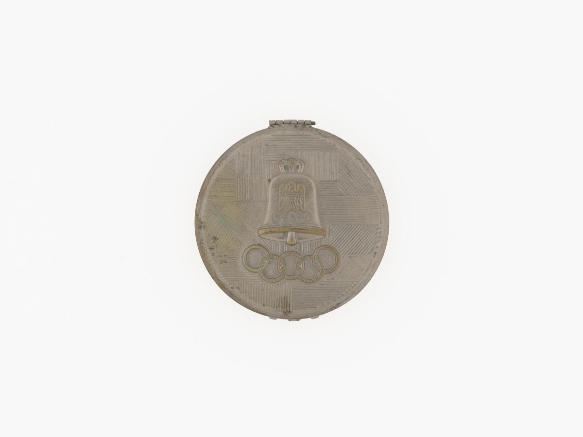 Berlin 1936, powder compact with the Games emblem and the Olympic symbol.