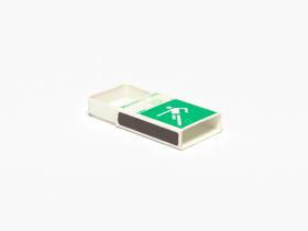 White and green matchbox with the Games' emblem and the pictogram of the football.