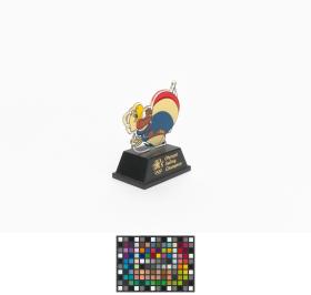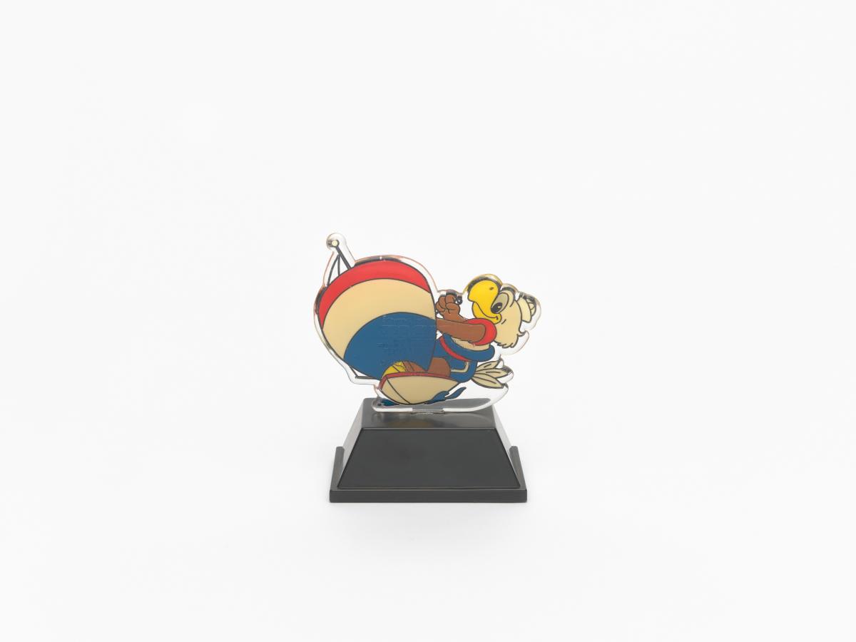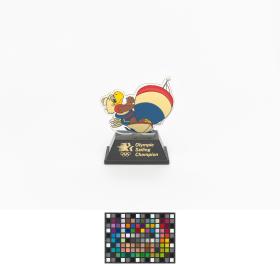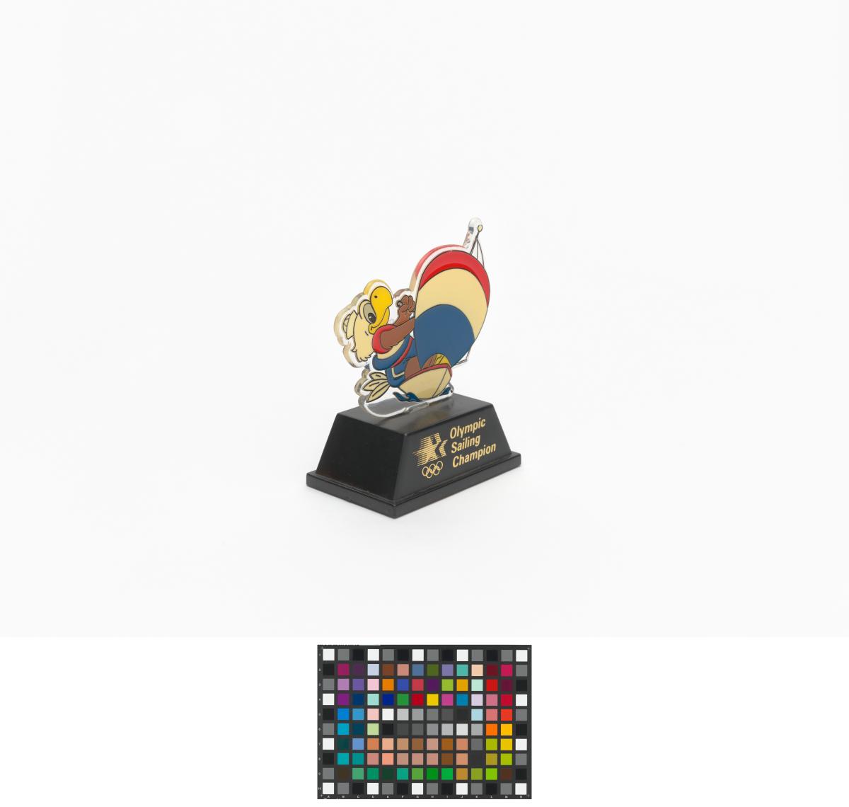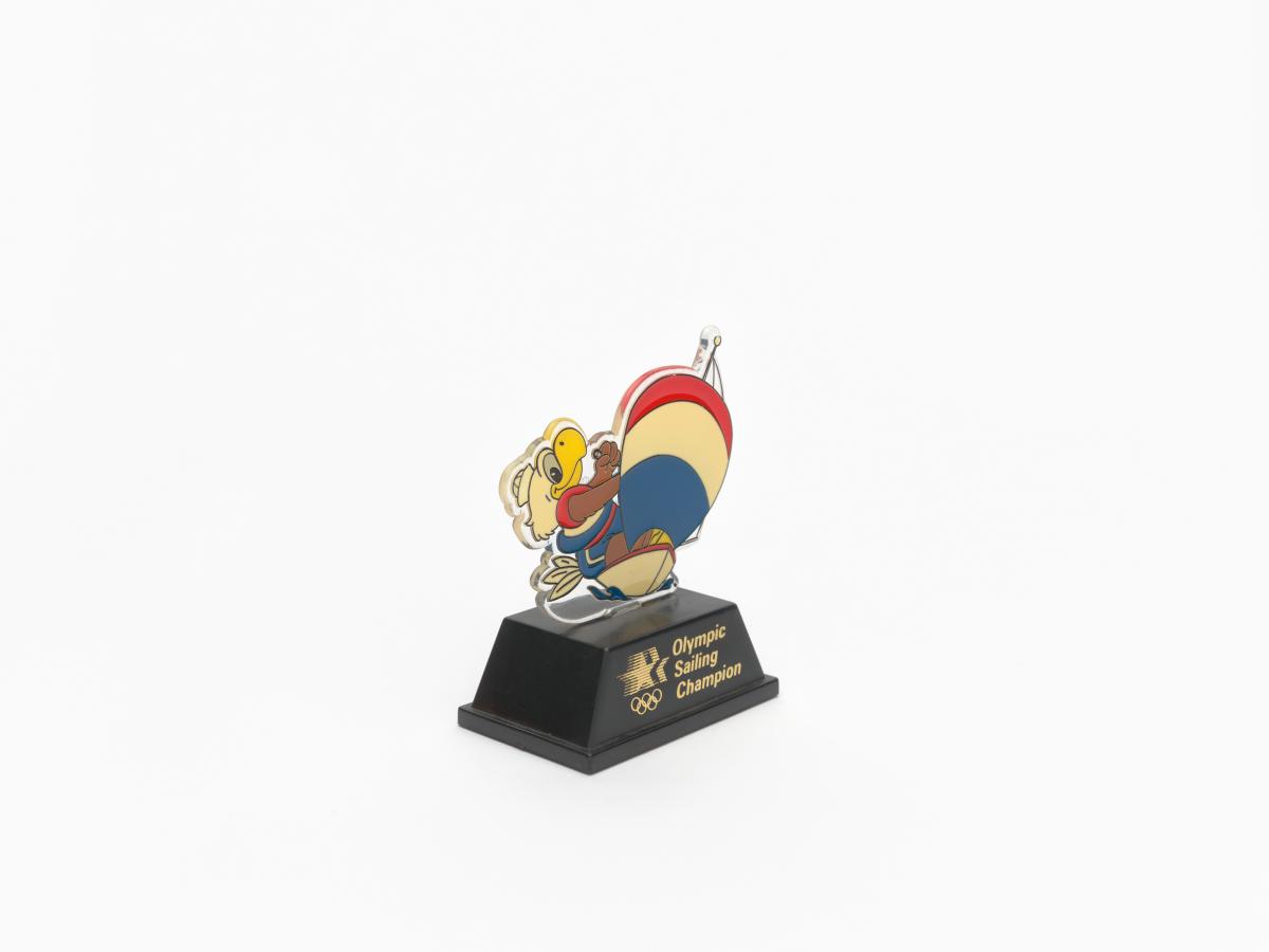 Little figurine in plastic on a base with the Games' emblem and the caption: "Olympic Sailing Champion".