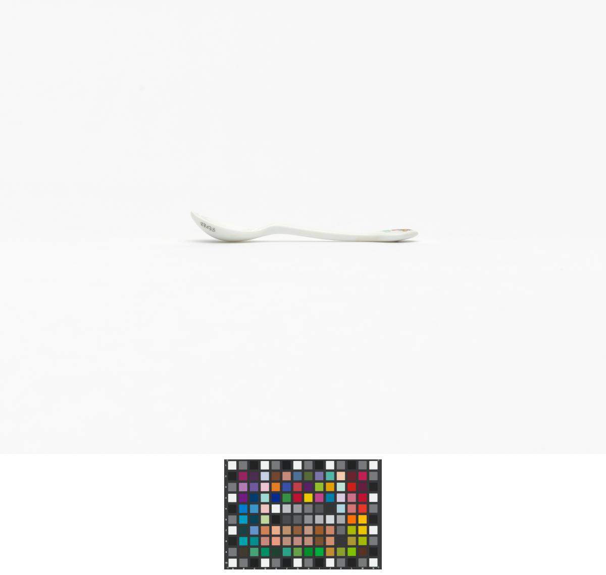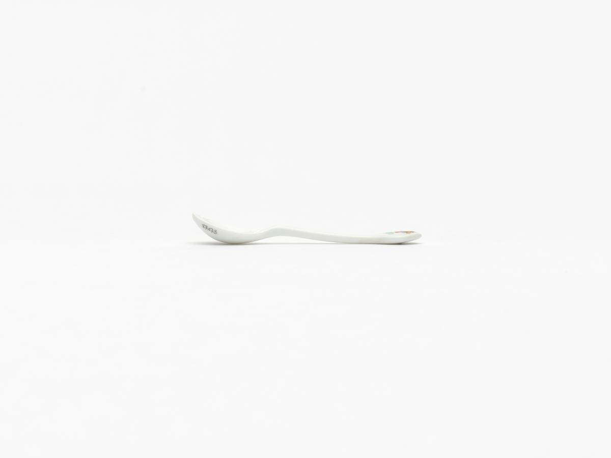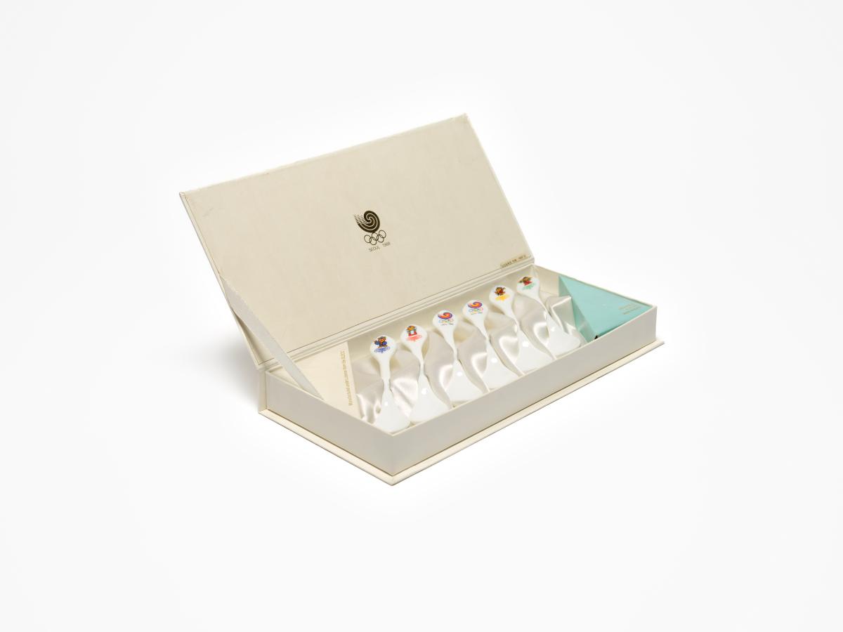 Seoul 1988, china spoon with Hosuni, the Games' mascot female counterpart, doing the fan dance.