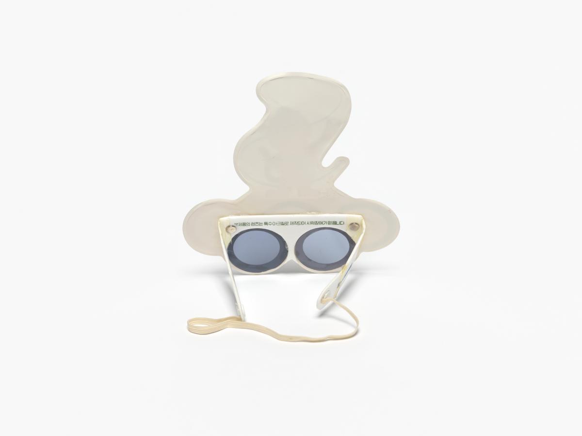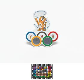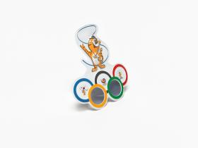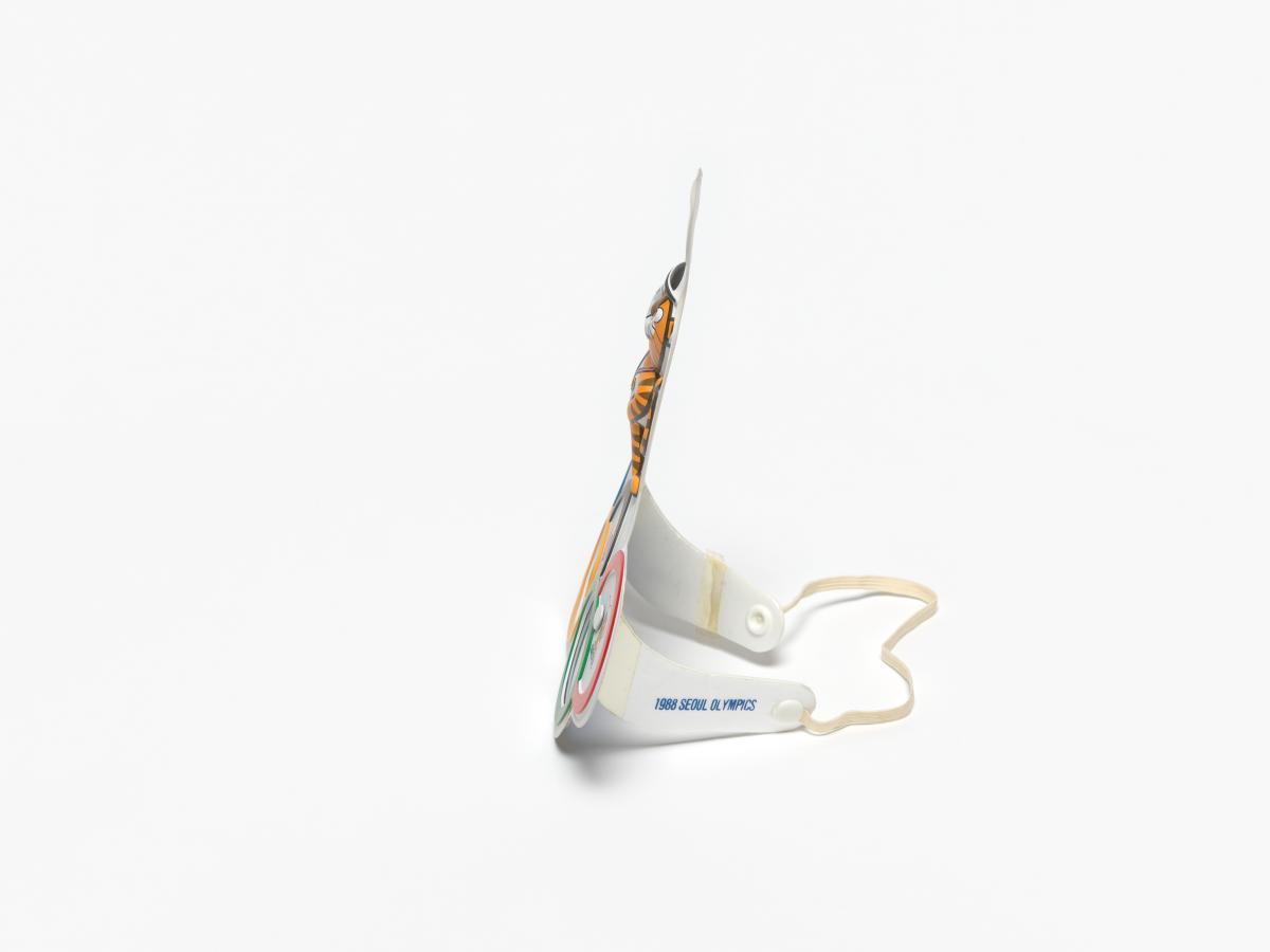 Seoul 1988, Olympic symbol-shaped glasses with Hodori, the Games' mascot.