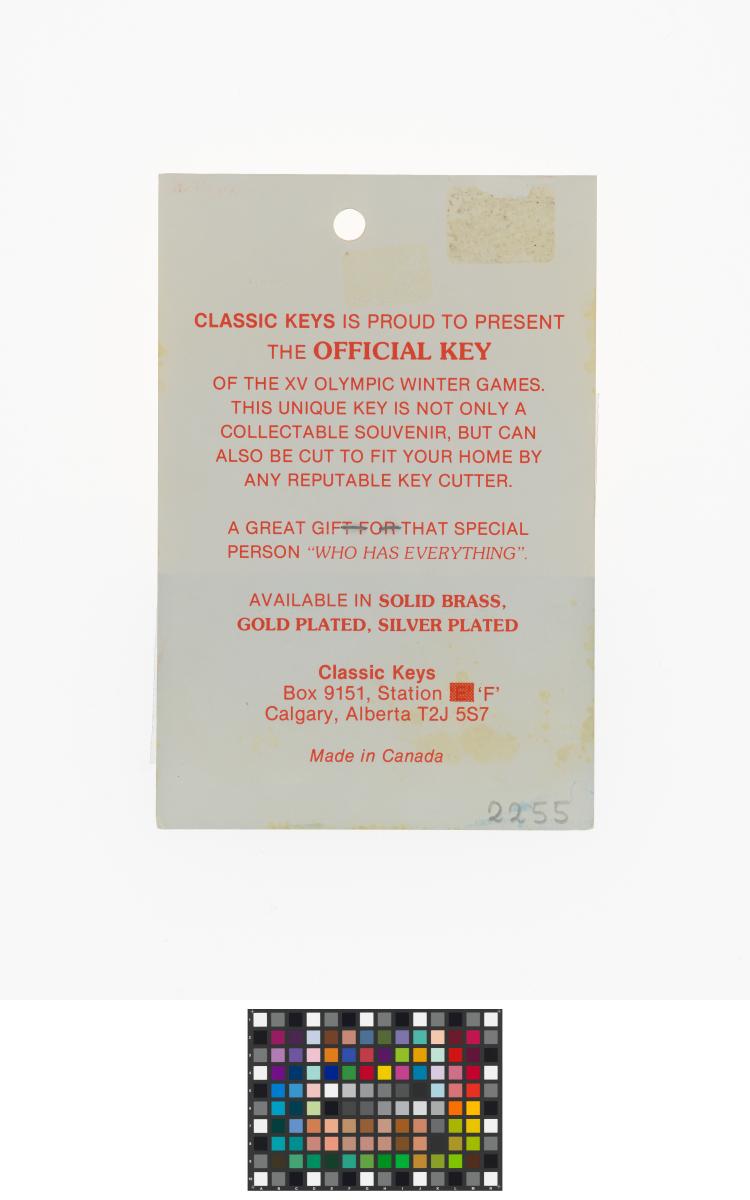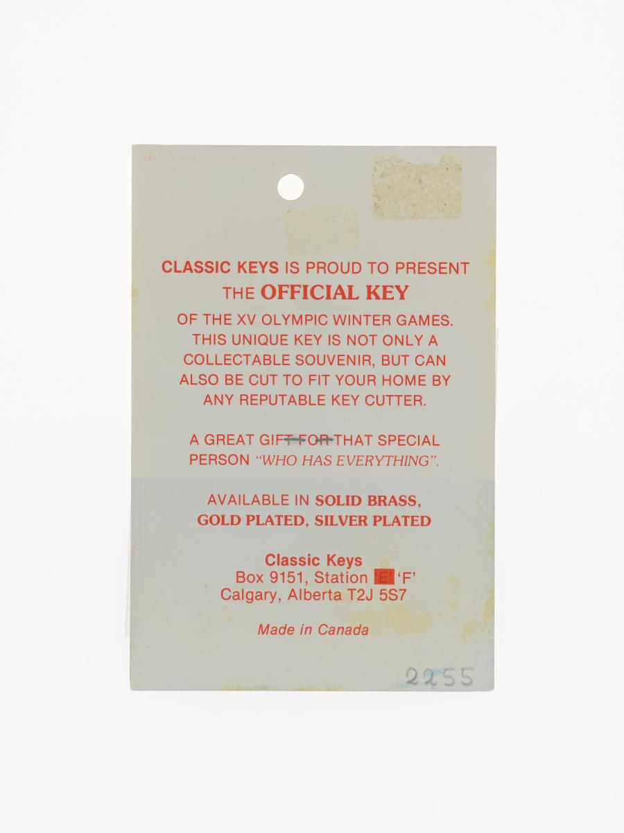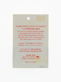 Calgary 1988, key with the Games' emblem.