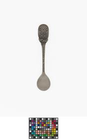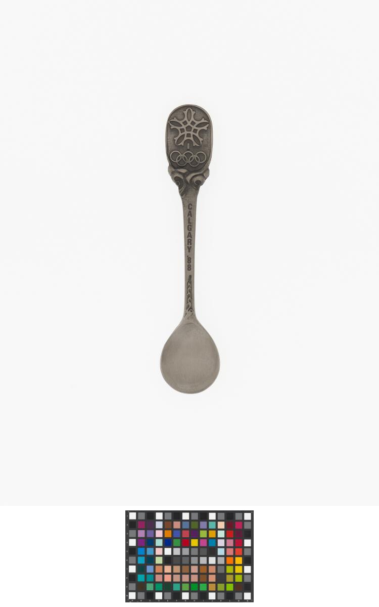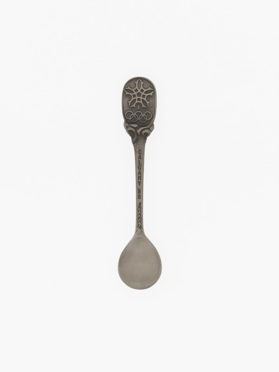 Spoon with the Games' Emblem on the handle. Caption: C/A/L/G/A/R/Y / 8/8".