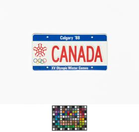 On the left, Games' Emblem. Caption: "Calgary '88 / CANADA / XV Olympic Winter Games".