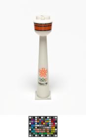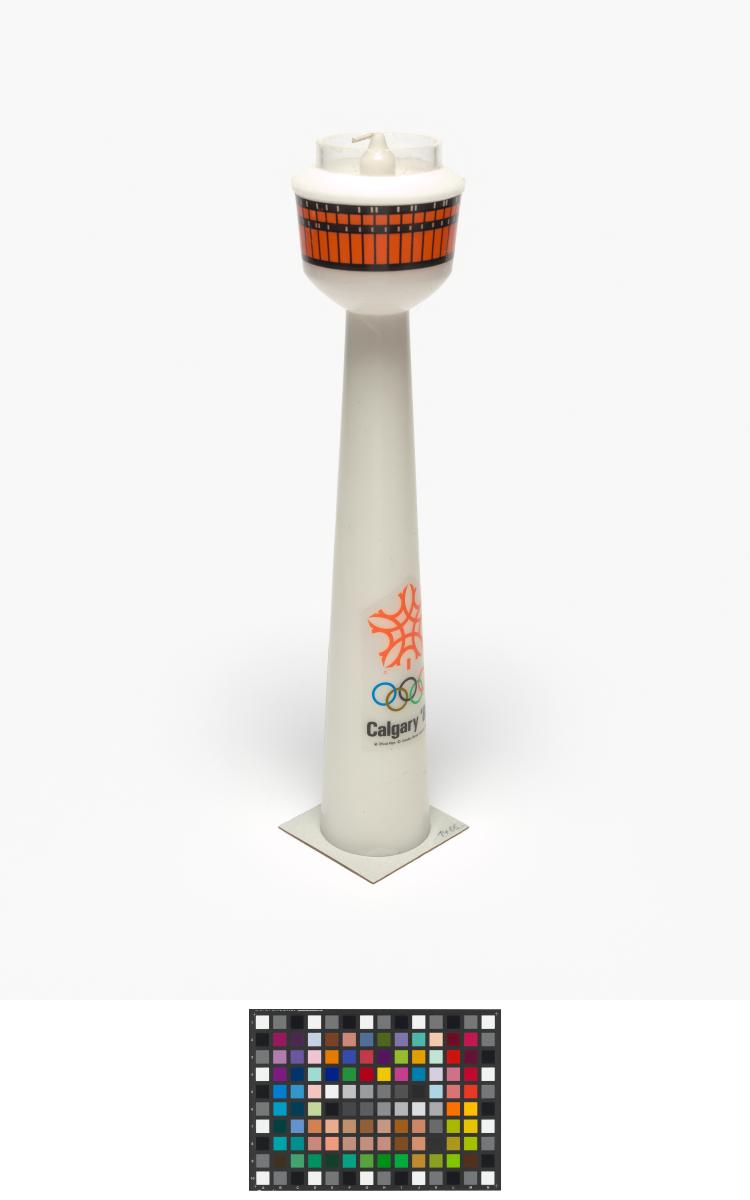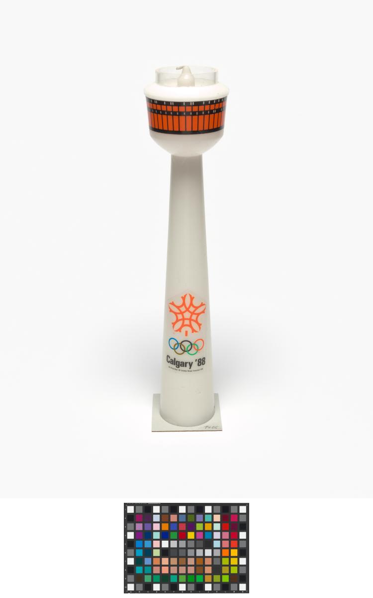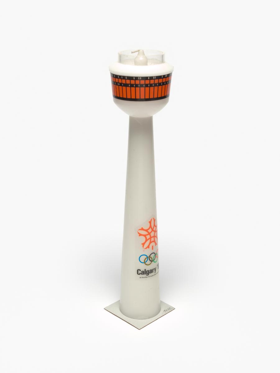 Calgary 1988, tower-shaped candle with the Games' emblem.