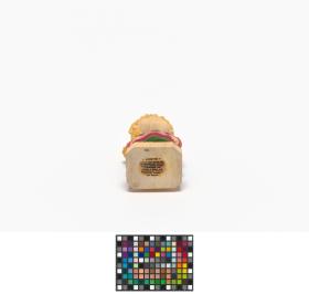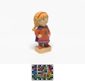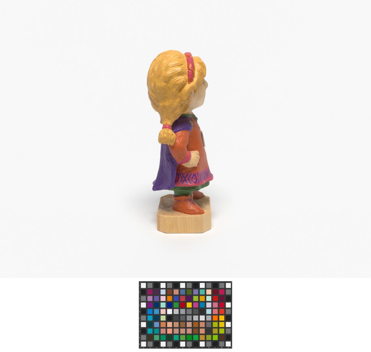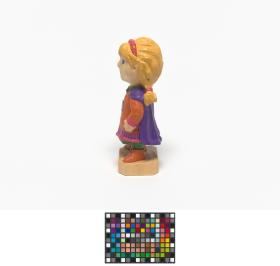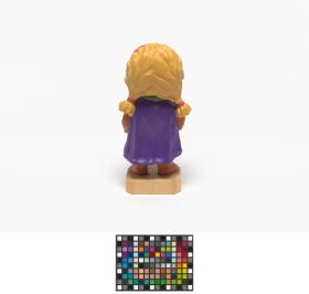 Wood doll wearing Middle-Age Clothes with the Games' Emblem.