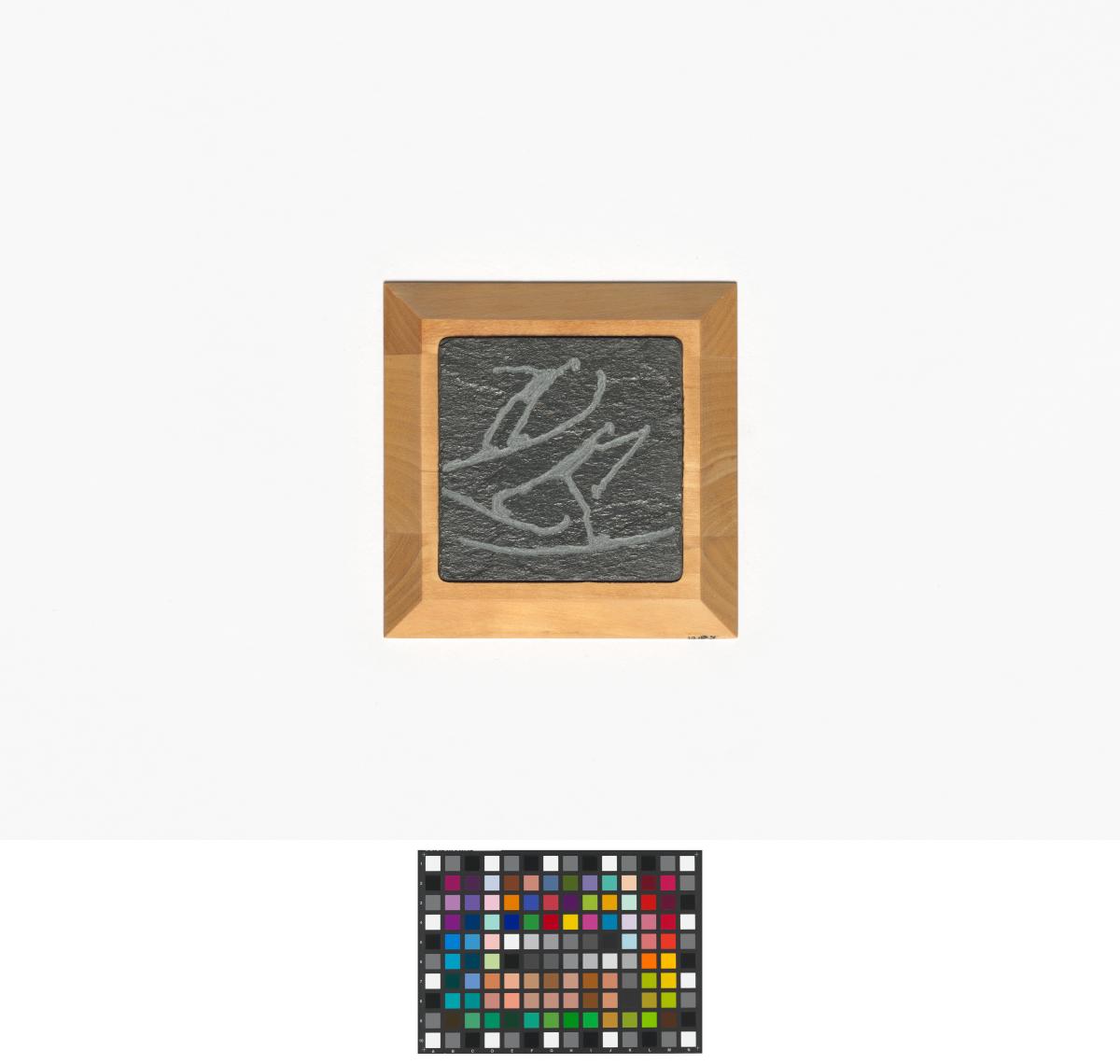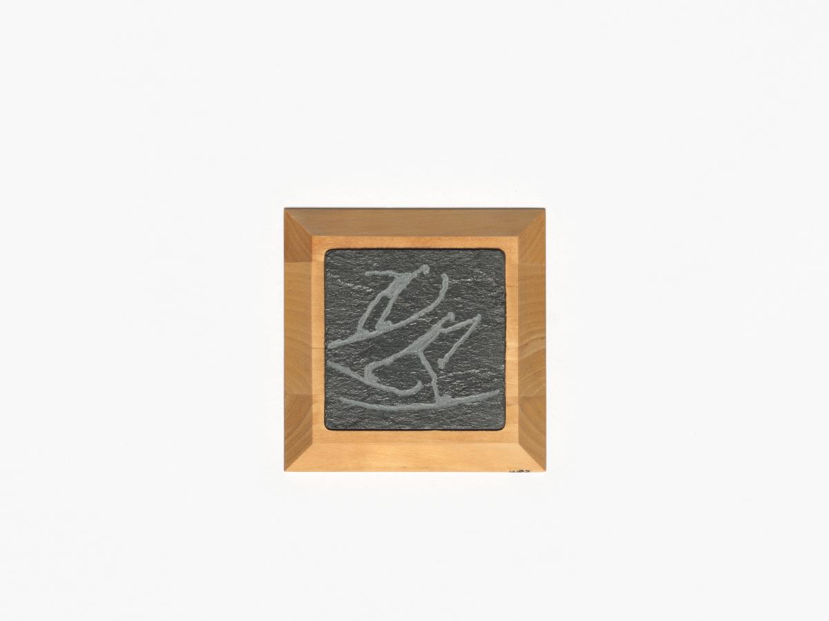 Plaque with the nordic combinated pictogram engraved on a slate. Wood frame.