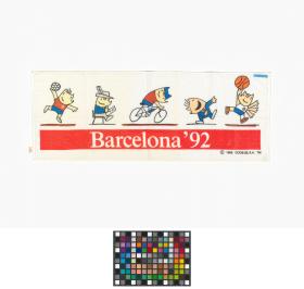 Patterns of Cobi in several roles and the caption: "Barcelona'92".