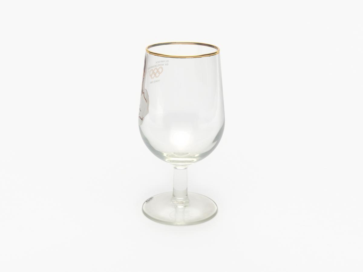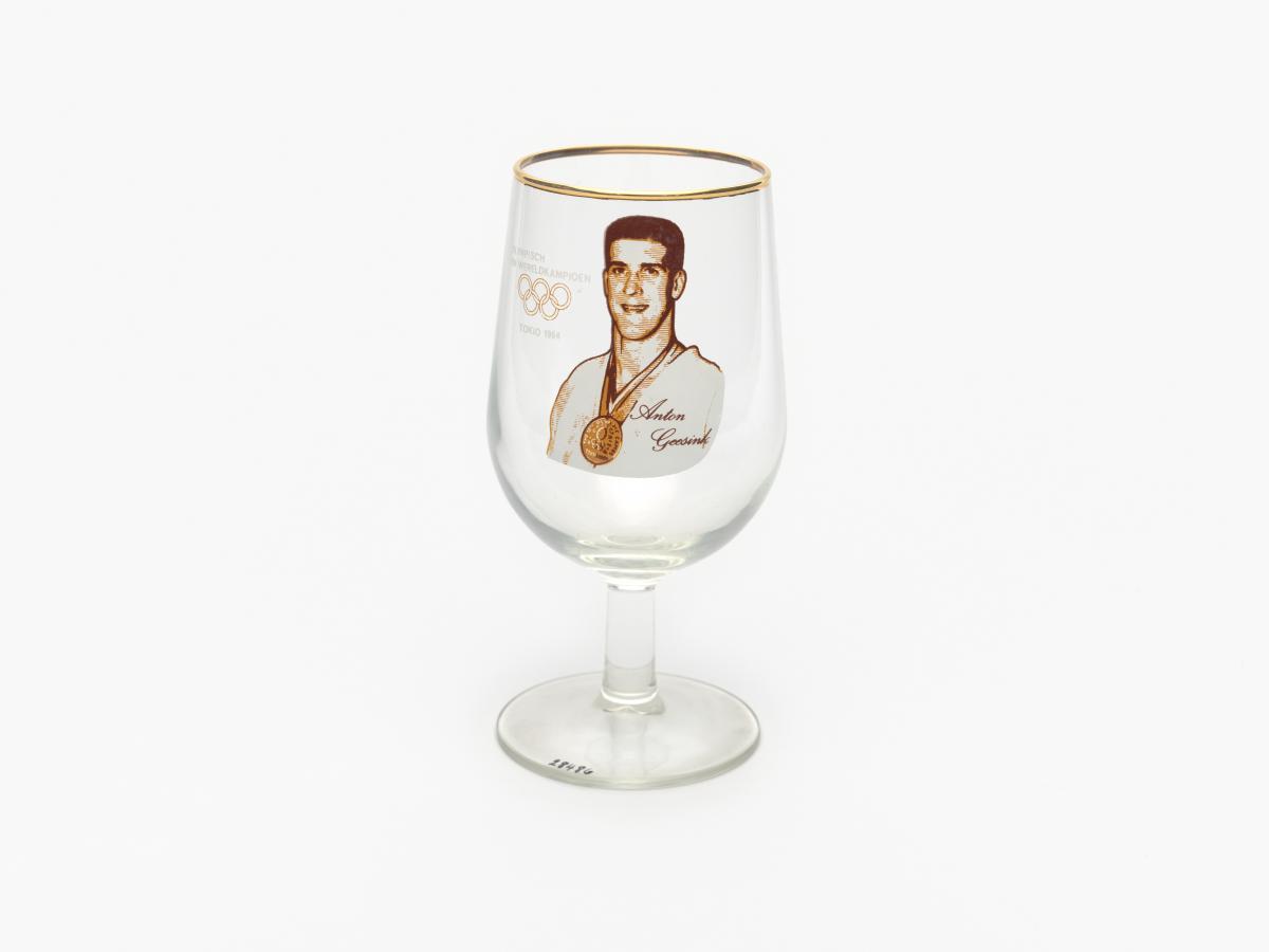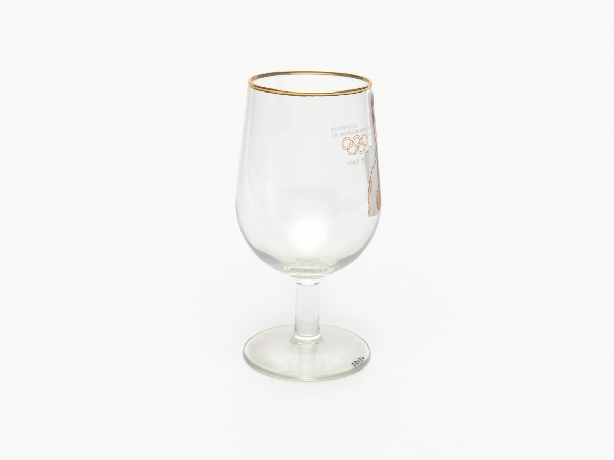 Tokyo 1964, stemmed glass with the photography of Anton GEESINK (NED), judo open category Olympic champion.