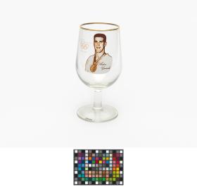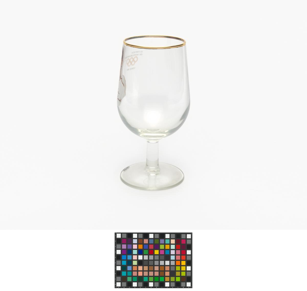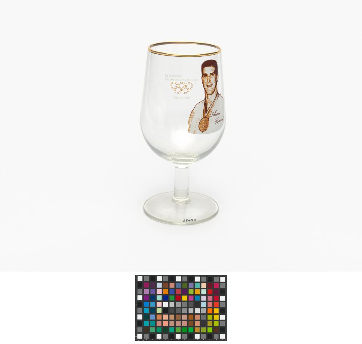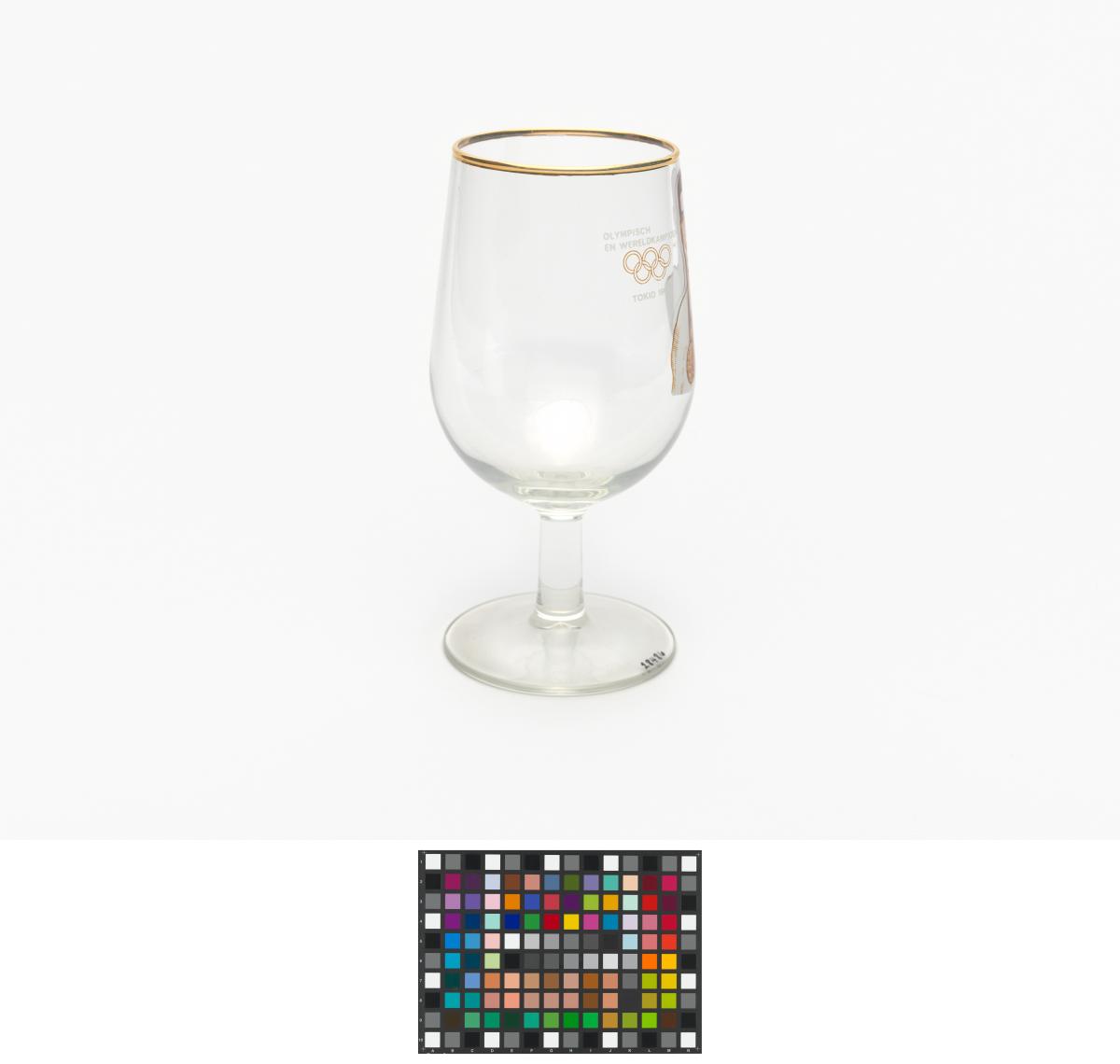 Tokyo 1964, stemmed glass with the photography of Anton GEESINK (NED), judo open category Olympic champion.
