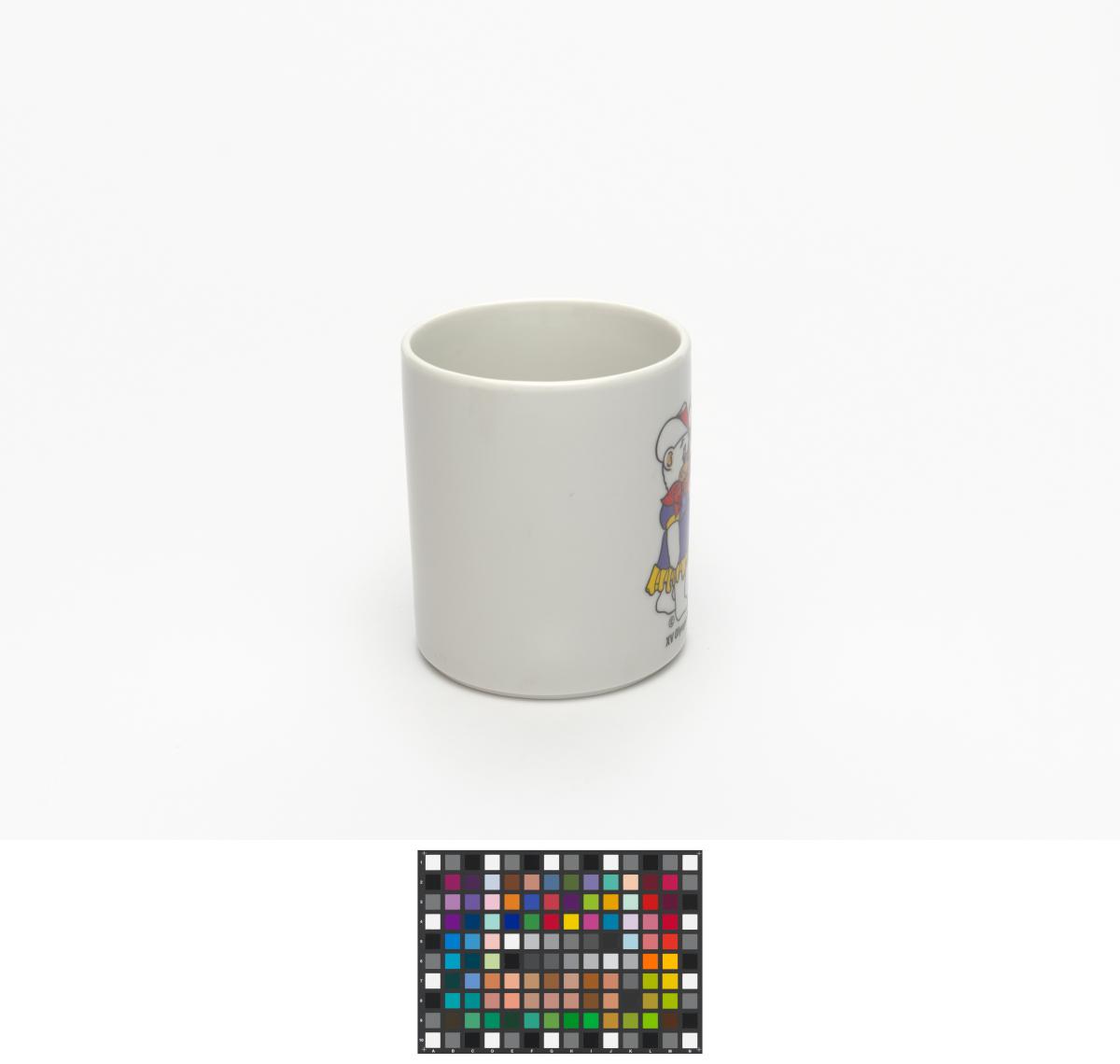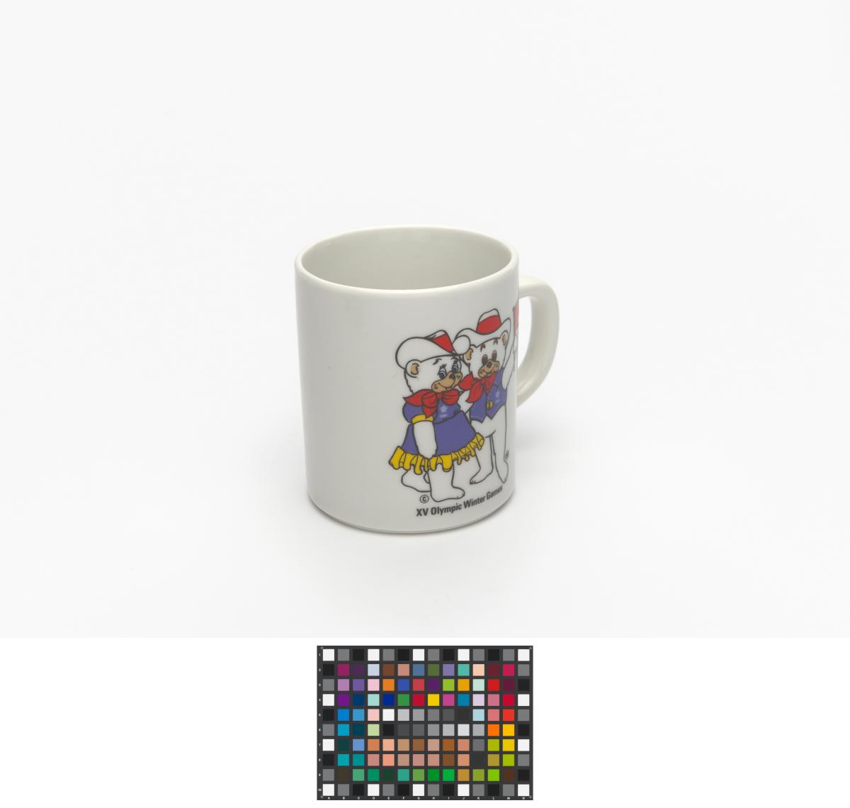 White mug with Hidy and Howdy, the Games' mascots.