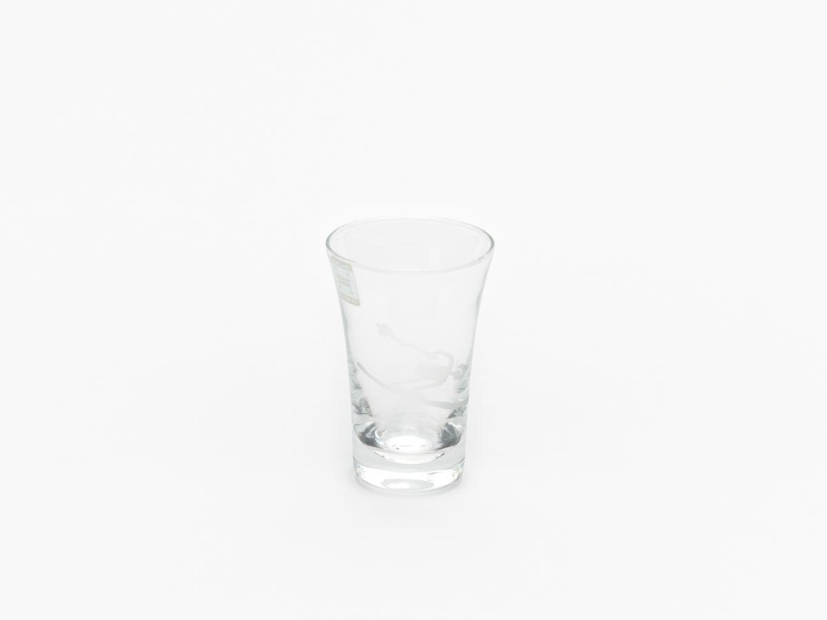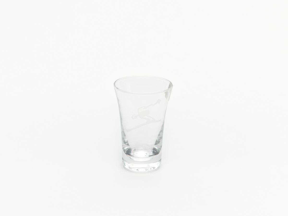 Liquor glass with the downhill skiing pictogram.
