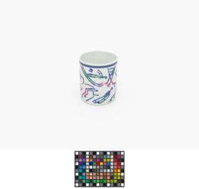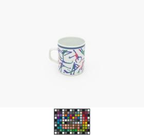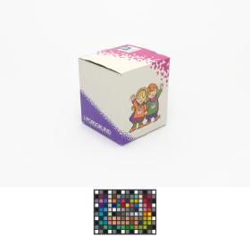 Cup with the sports pictograms and the Games' Emblem. Box with Hakon and Kristin, the Games' Mascots.