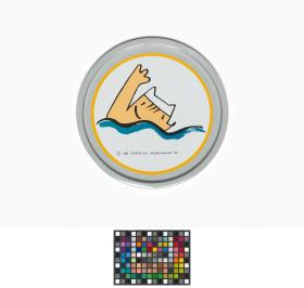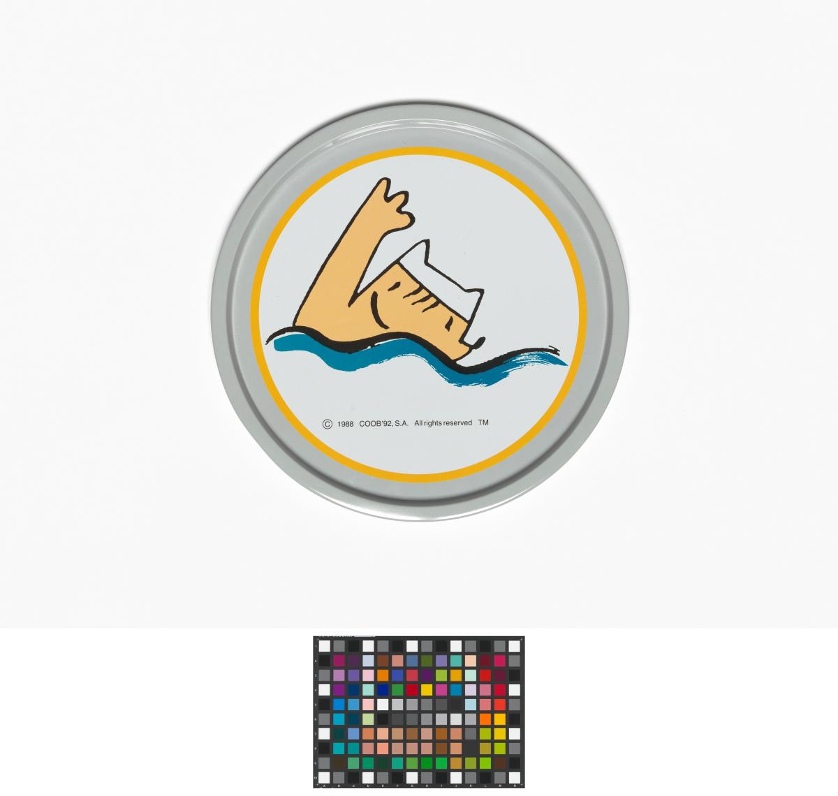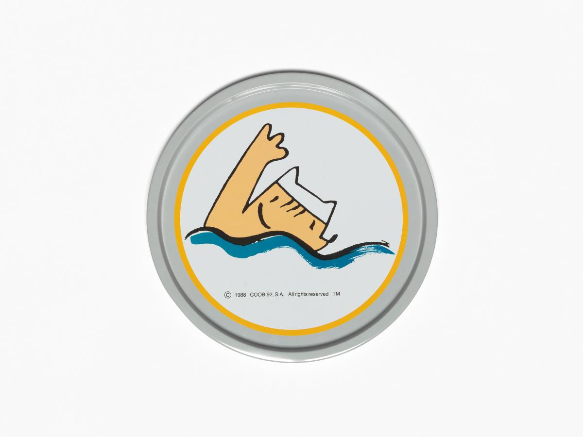 Barcelona 1992, round tray with Cobi, the Games' mascot, swimming.