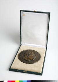 Round plaque depicting Alfréd Hajós, first Hungarian Olympic champion.