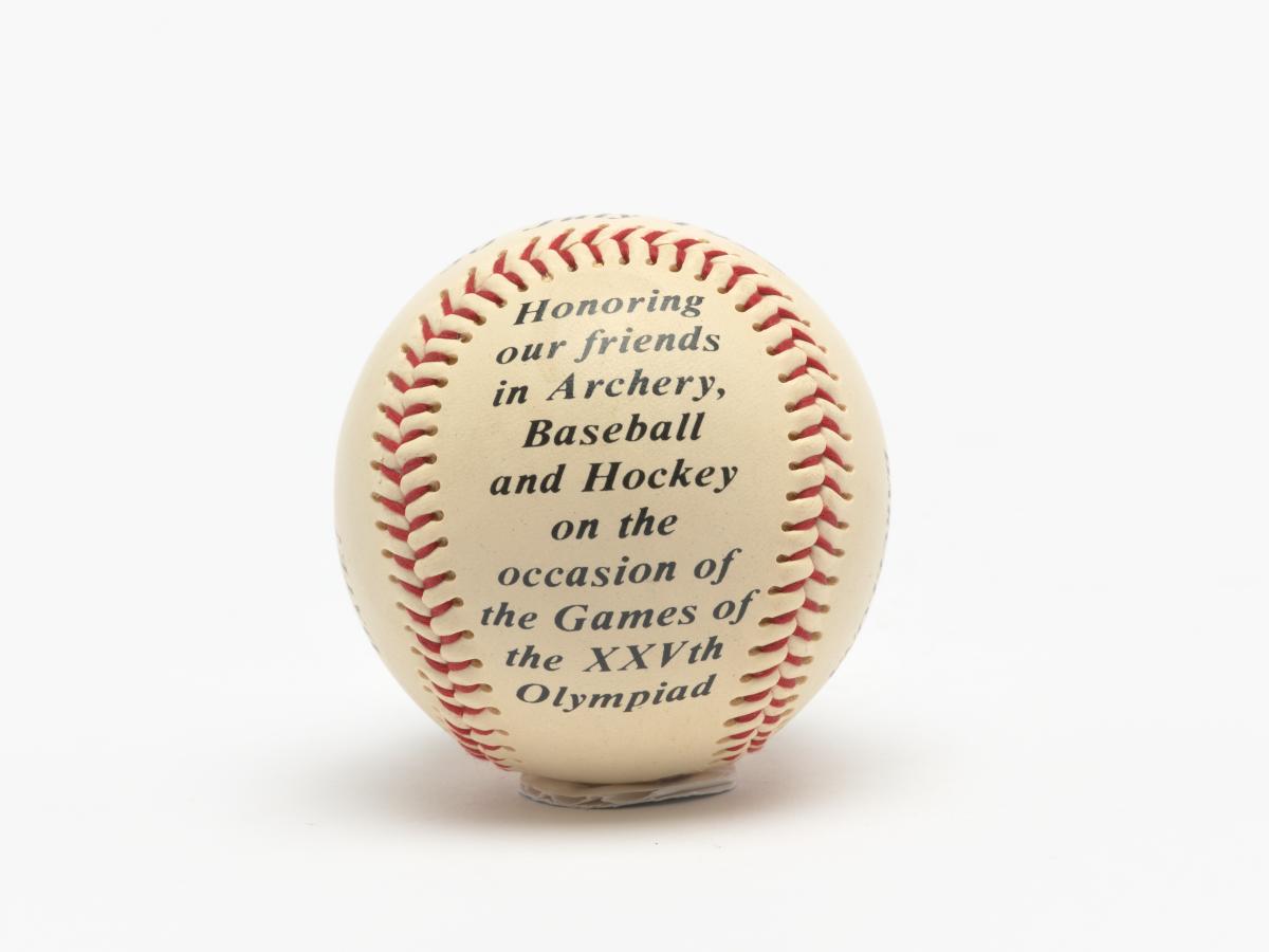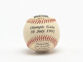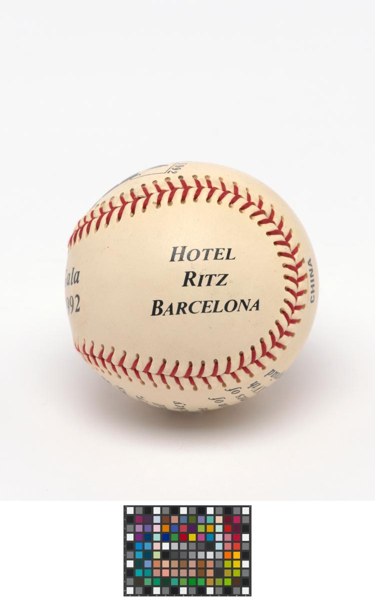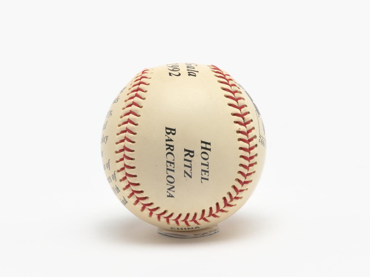 Several inscriptions on the ball: "Olympic Gala, 30 July 1992, Hotel Ritz Barcelona".