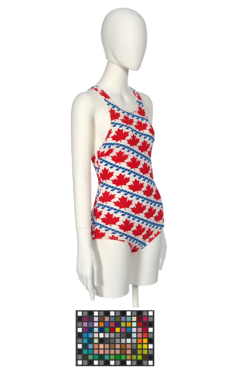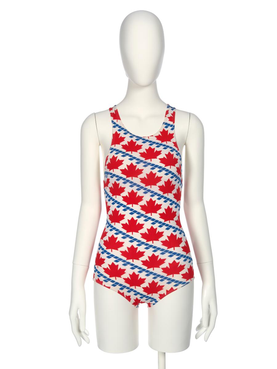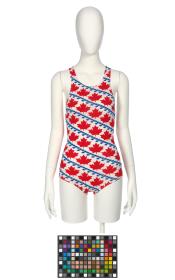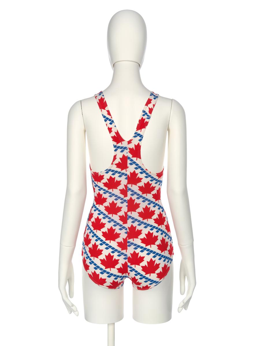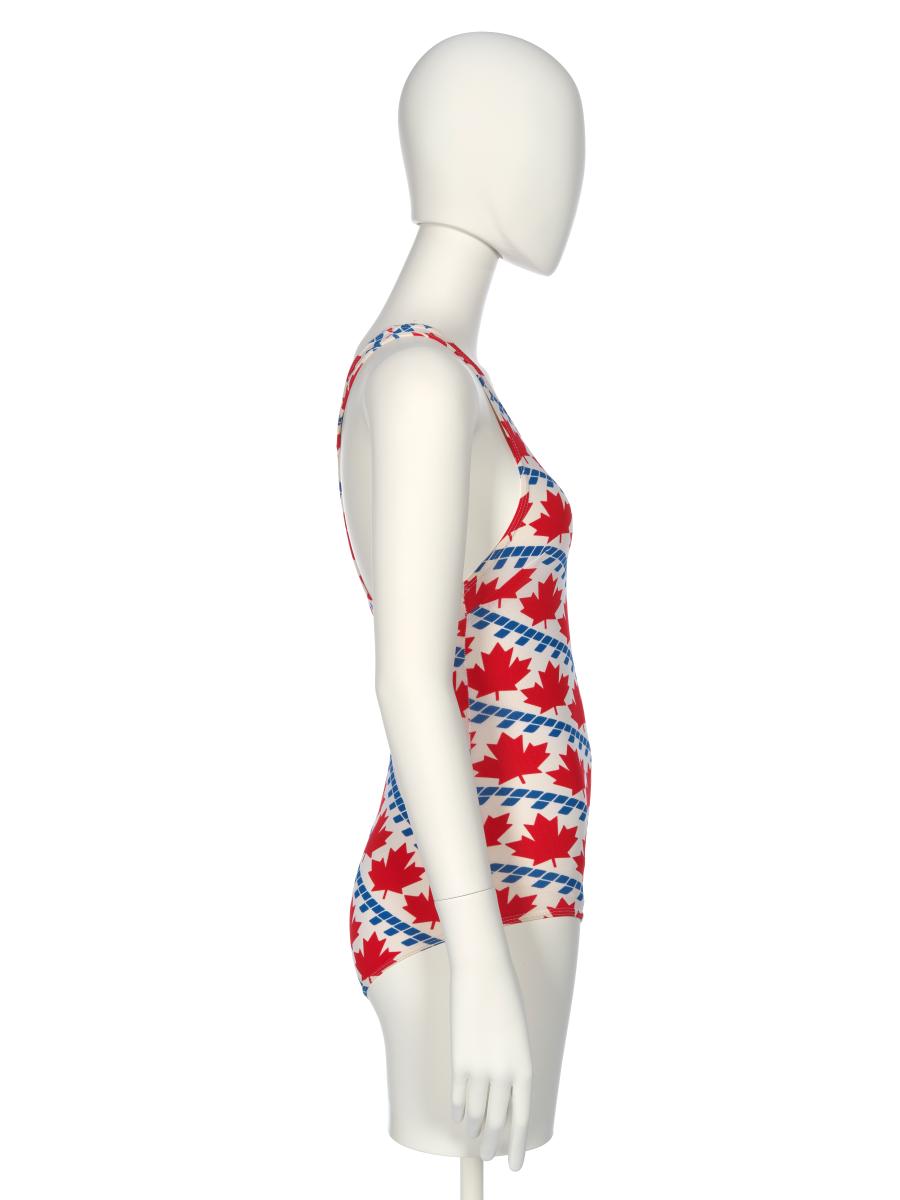 Swimsuit with mapple leaf patterns, created by Ventex. Size 40/34.