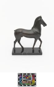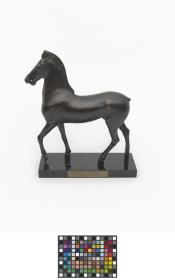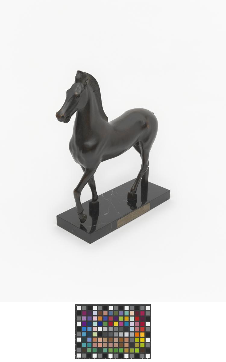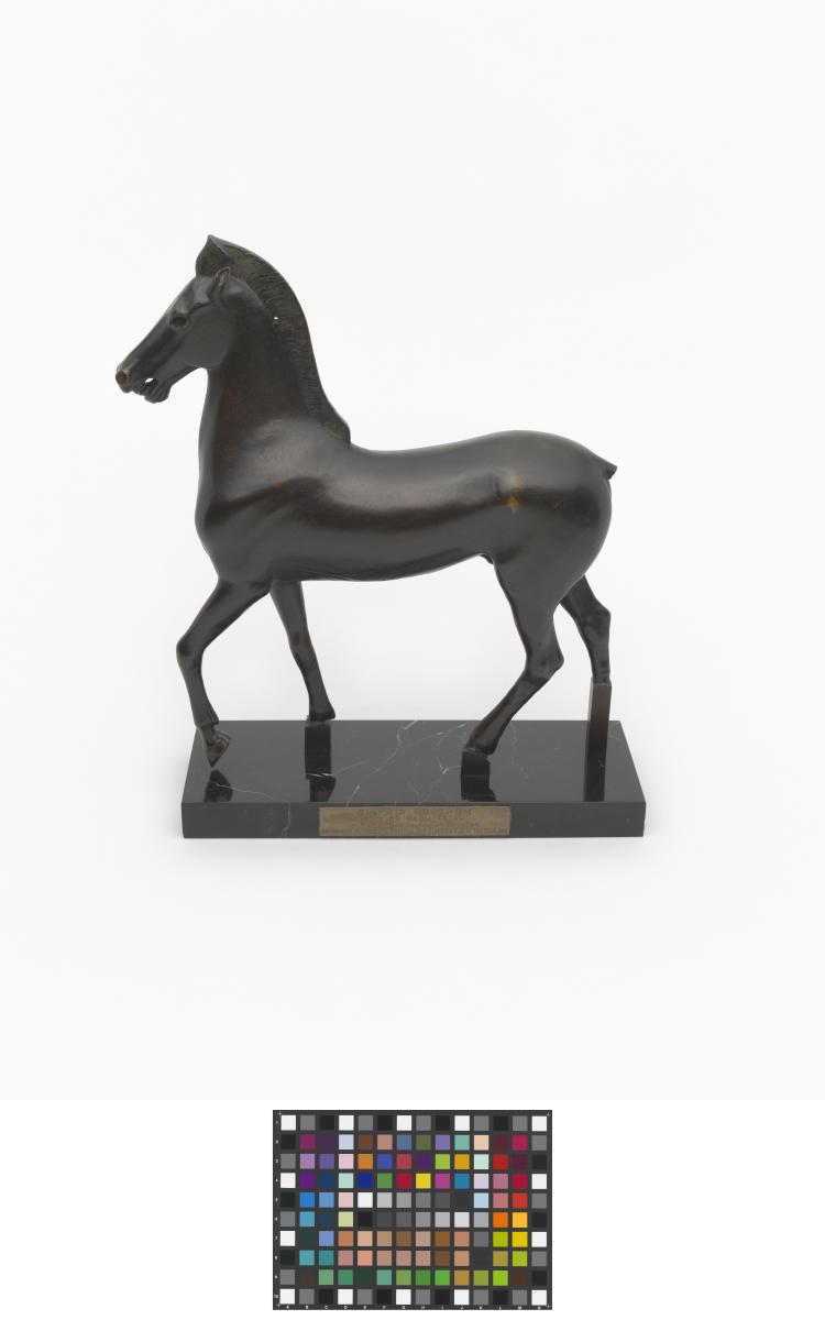 Replica of an Late-Hellenistic bronze statuette of horse held at the New York Metropolitan Museum. Plaque with the following caption on the base: "Sigfrid Edström zum 80 Geburstag im Namen des Deutschen Sporten Nationalen Komitees der Bundesrepublik Deutschland."