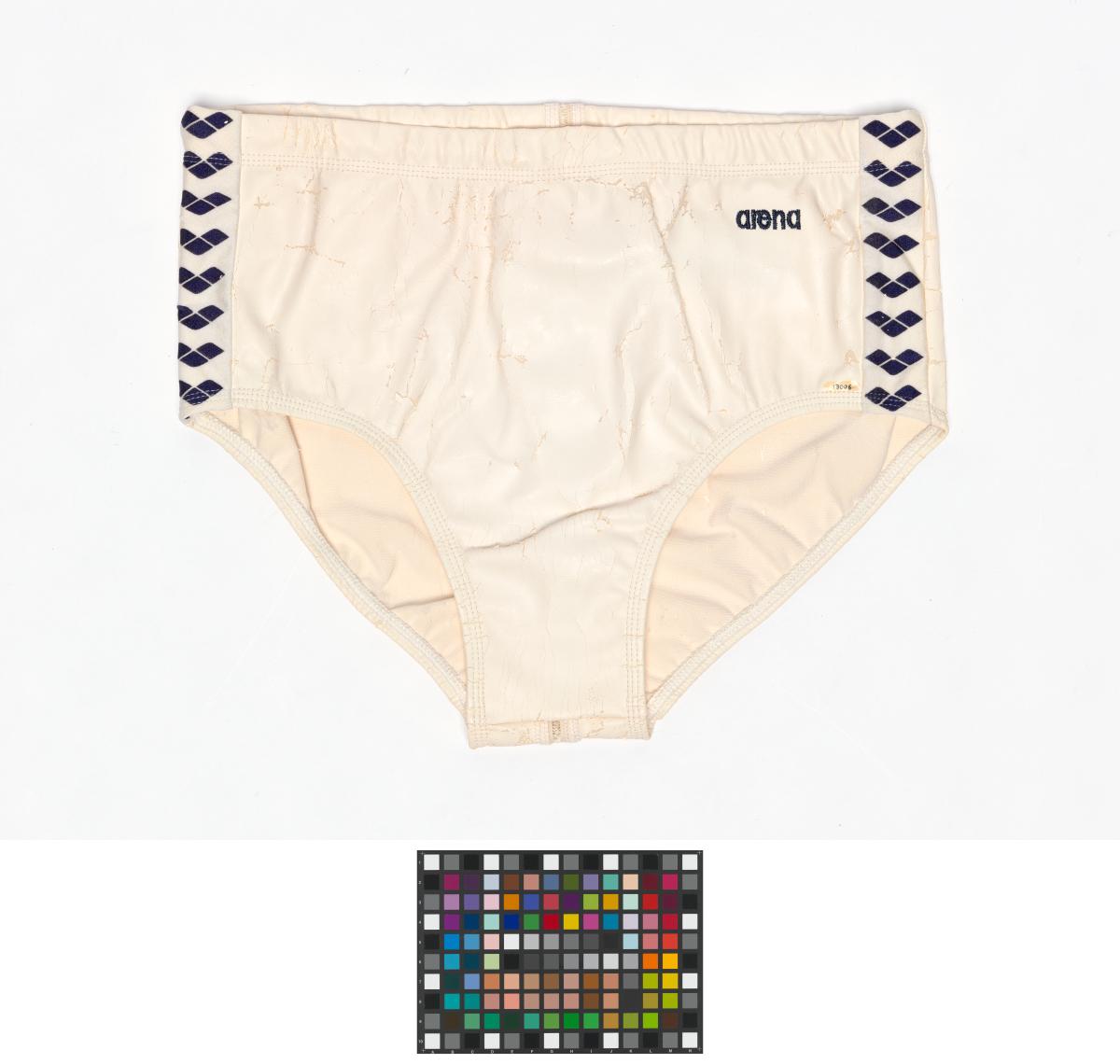 Artefacts© 2024 – IOC / Memorist / Serban Bonciocat© 2024 – IOC / Memorist / Serban Bonciocat© 2024 – IOC / Memorist / Serban Bonciocat© 2024 – IOC / Memorist / Serban Bonciocat© 2024 – IOC / Memorist / Serban Bonciocat© 2024 – IOC / Memorist / Serban BonciocatArena men swimsuit for the water polo.Physical descriptionSize 85.CreatedCreated: ArenaMaterialspolyester, synthetic materialColorsblack, whiteDimension64 gType of itemSport equipment -> swimsuitReference number13006KeywordsMaleWater poloSee more
