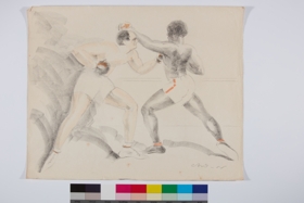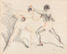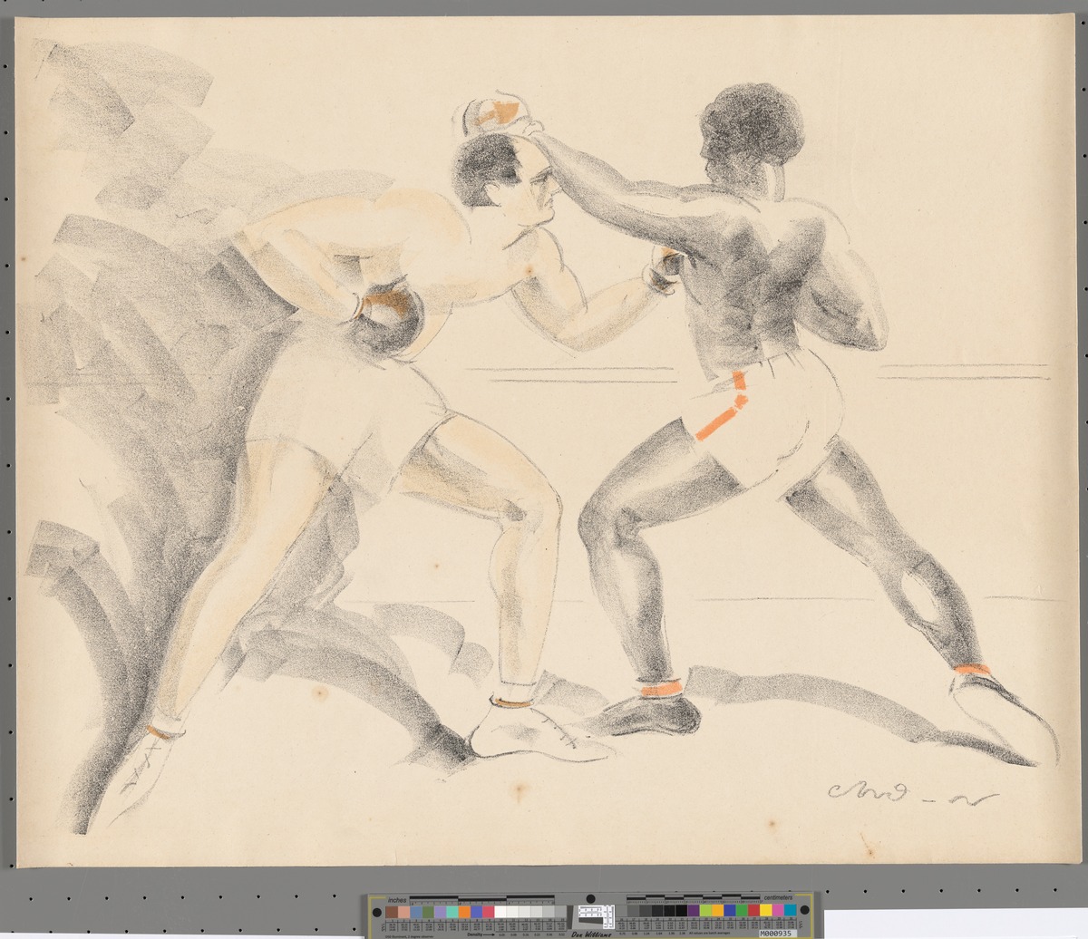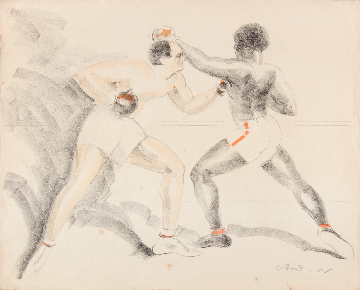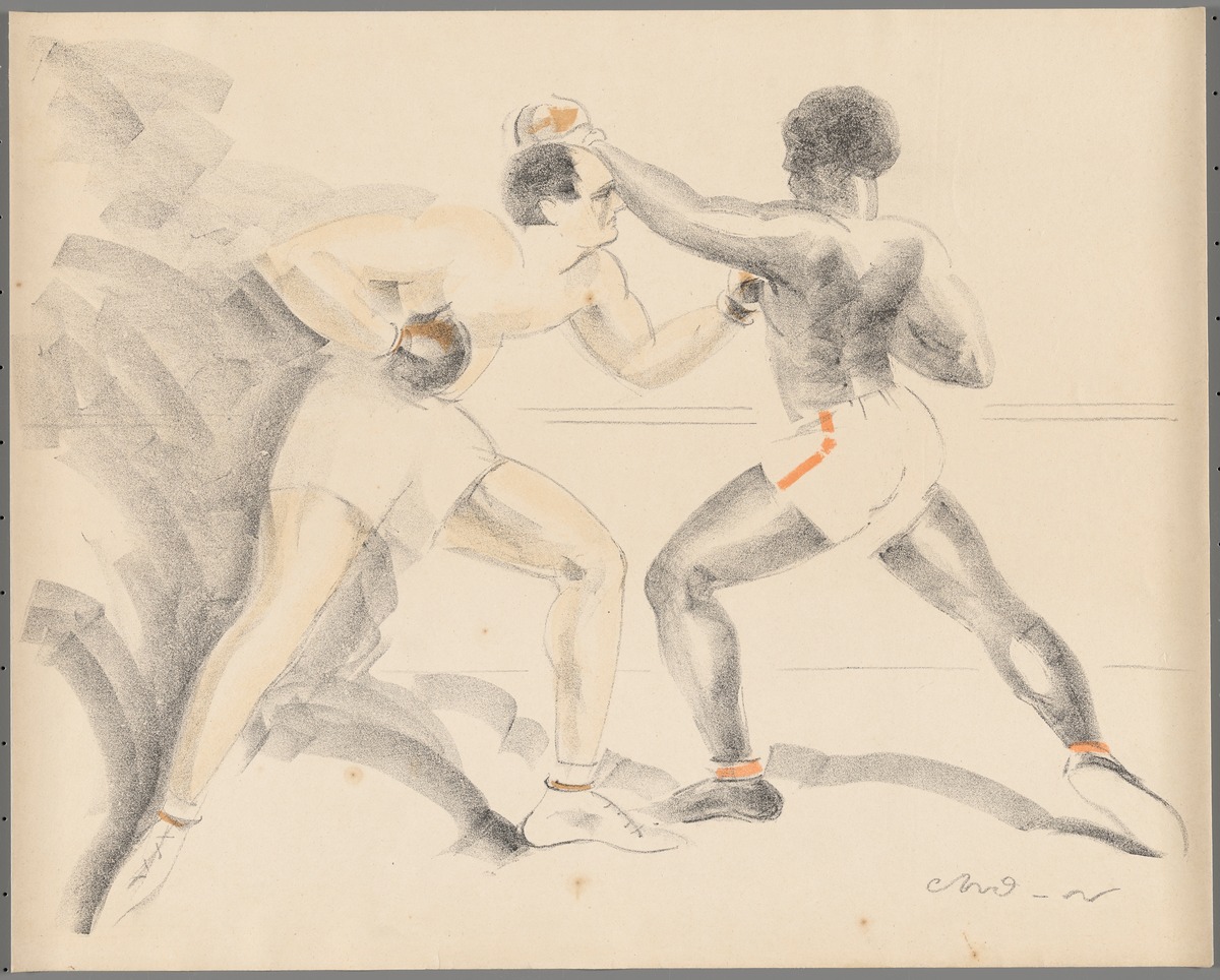 Two boxers on the ring. Lithography. Signed: "Chaurand-Naurac" lower right.