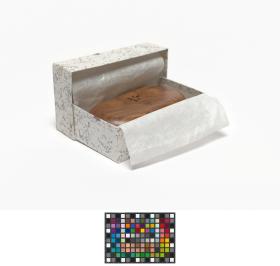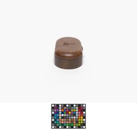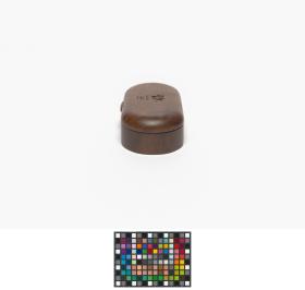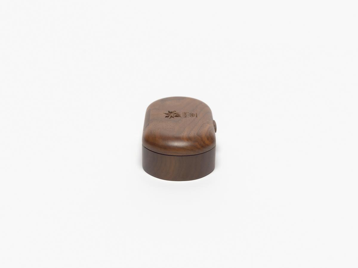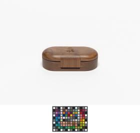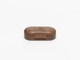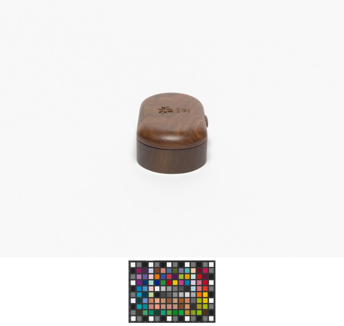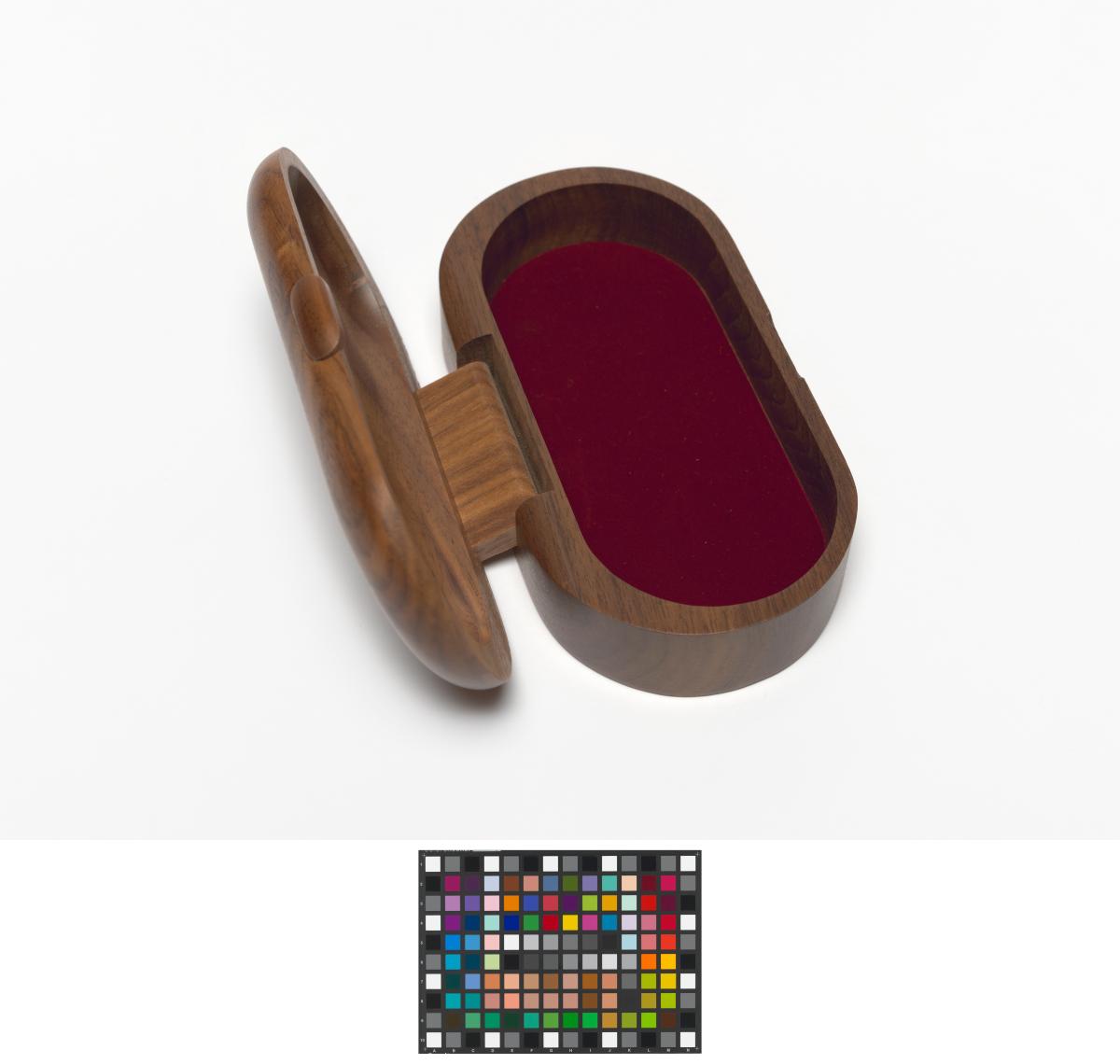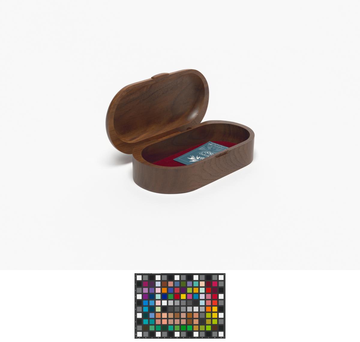 Ovale shaped box with the Games' emblem engraved in the wood on the lid.