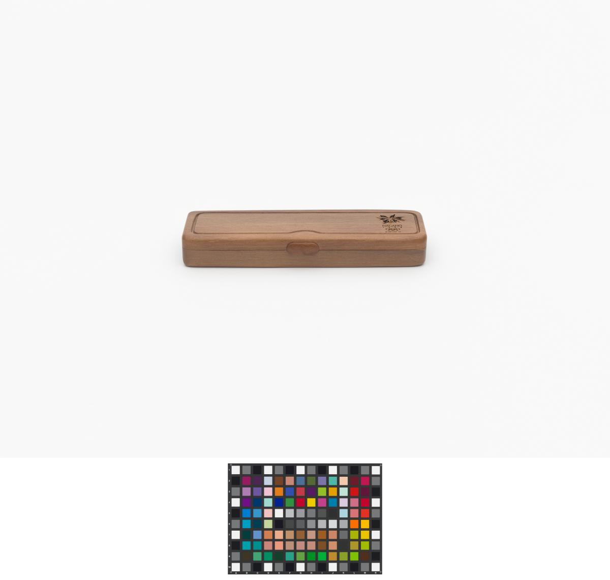 Rectangular shaped box with the Games' emblem engraved in the wood on the lid.