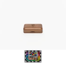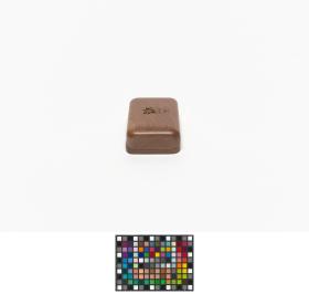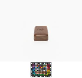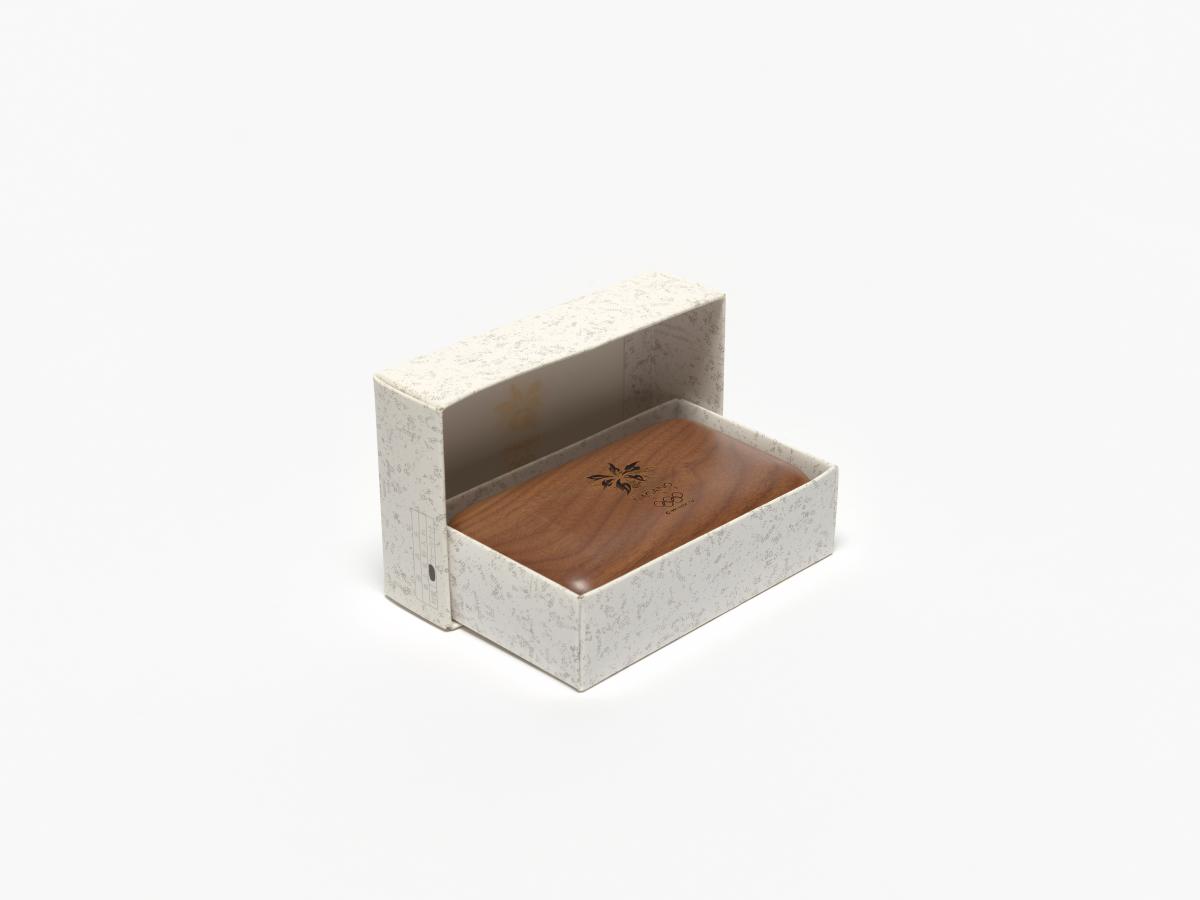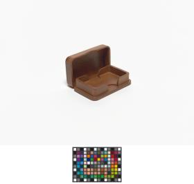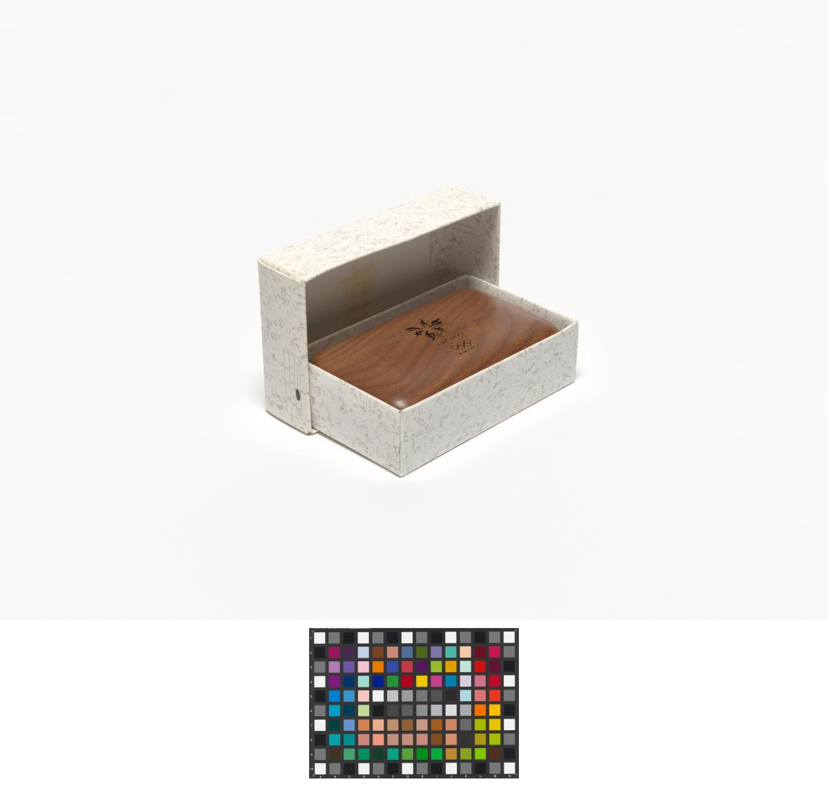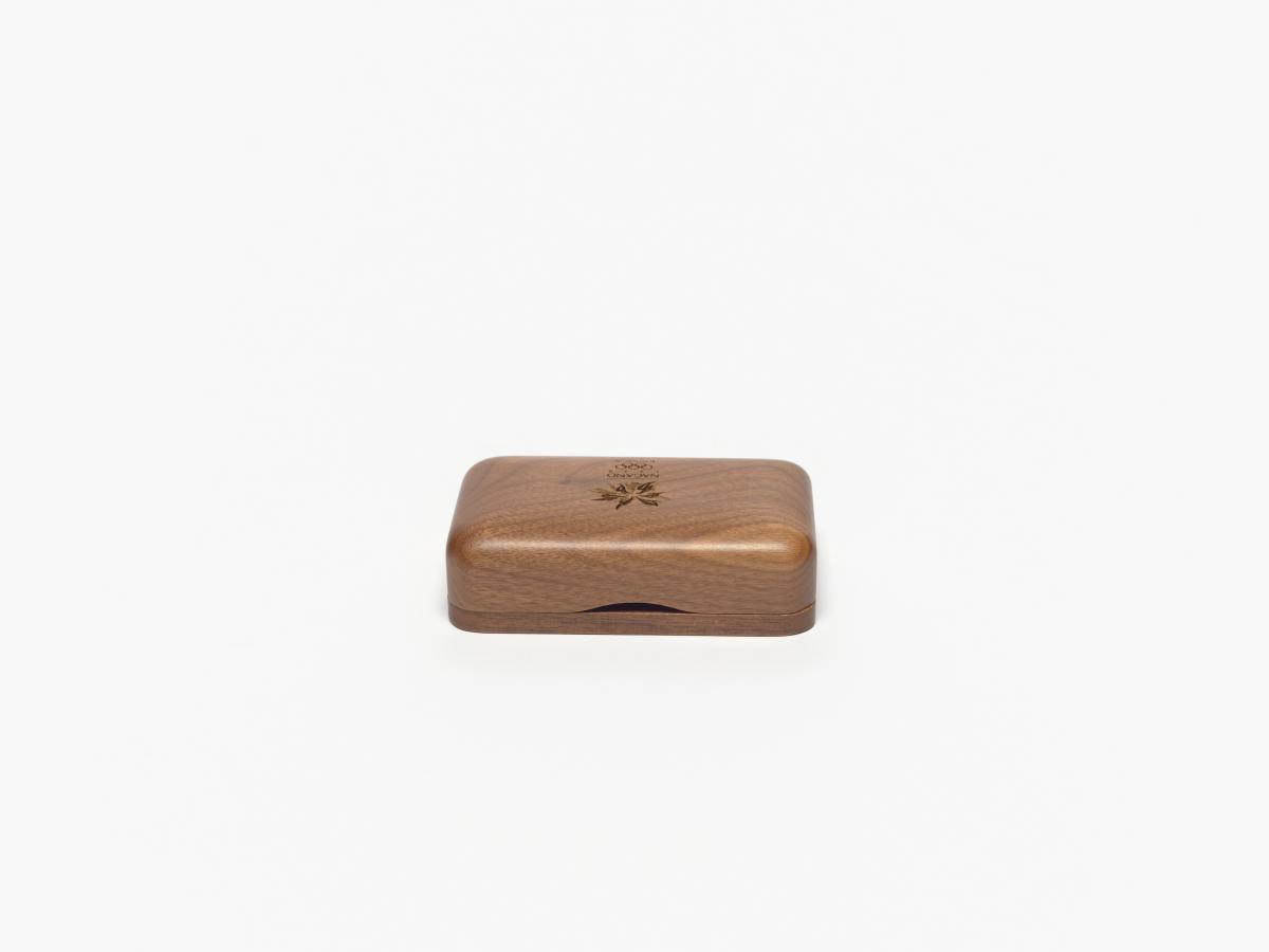 Box with rounded corners and the Games' emblem engraved in the wood on the lid.