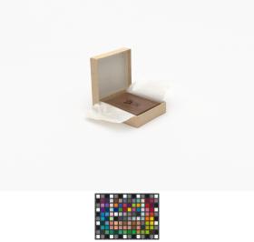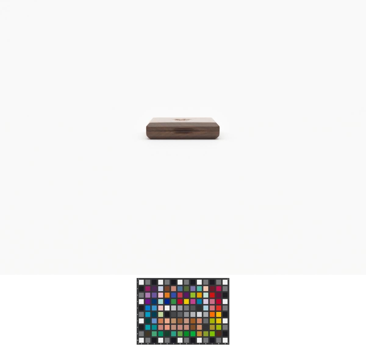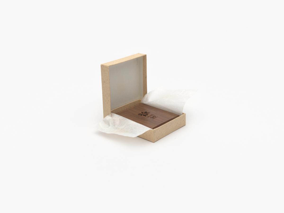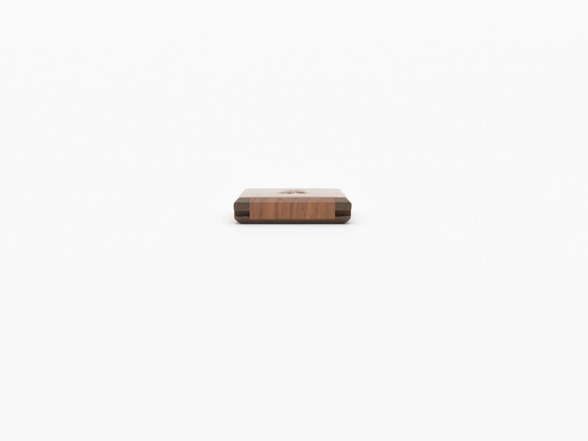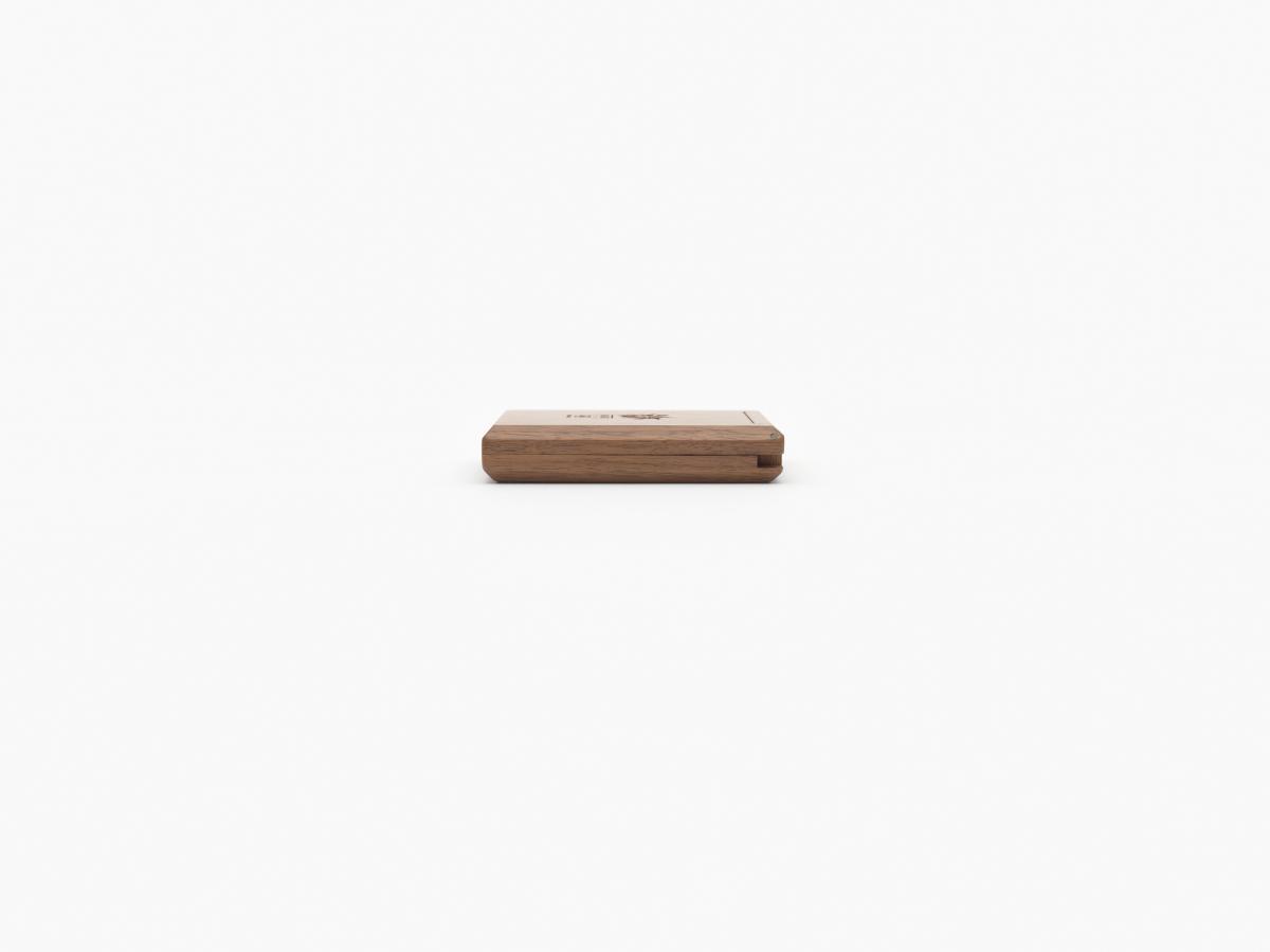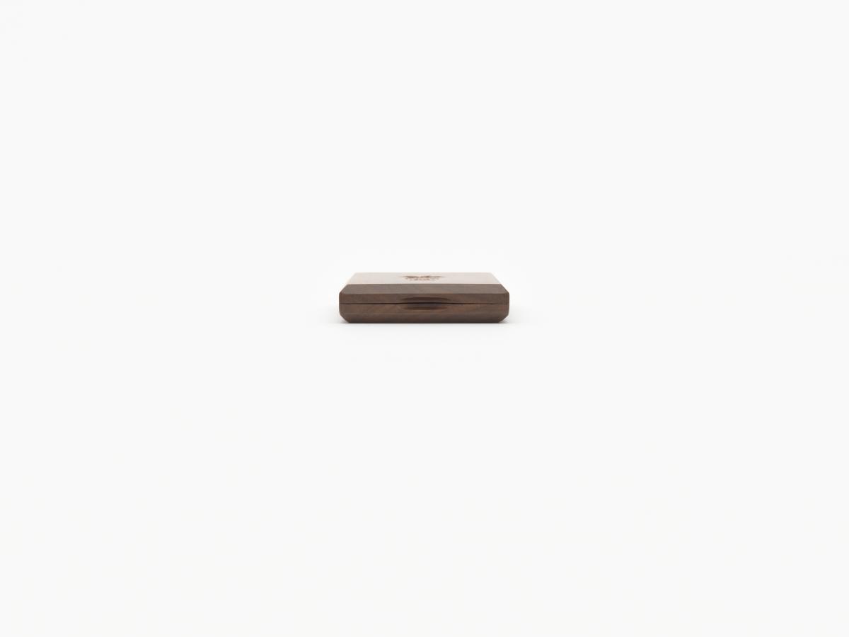 On one side a mirror, and on the other compartments to put earrings. Games' emblem engraved in the wood on the lid.