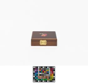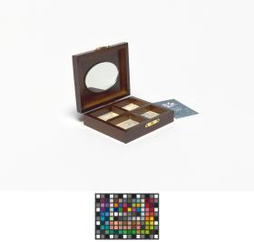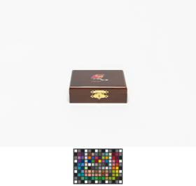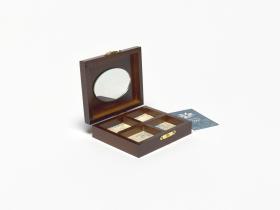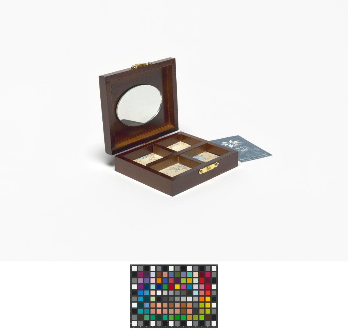 On the lid, a drawing of the mascot Tsukki playing ice-hockey. Inside, a mirror and compartments to put jewellery.