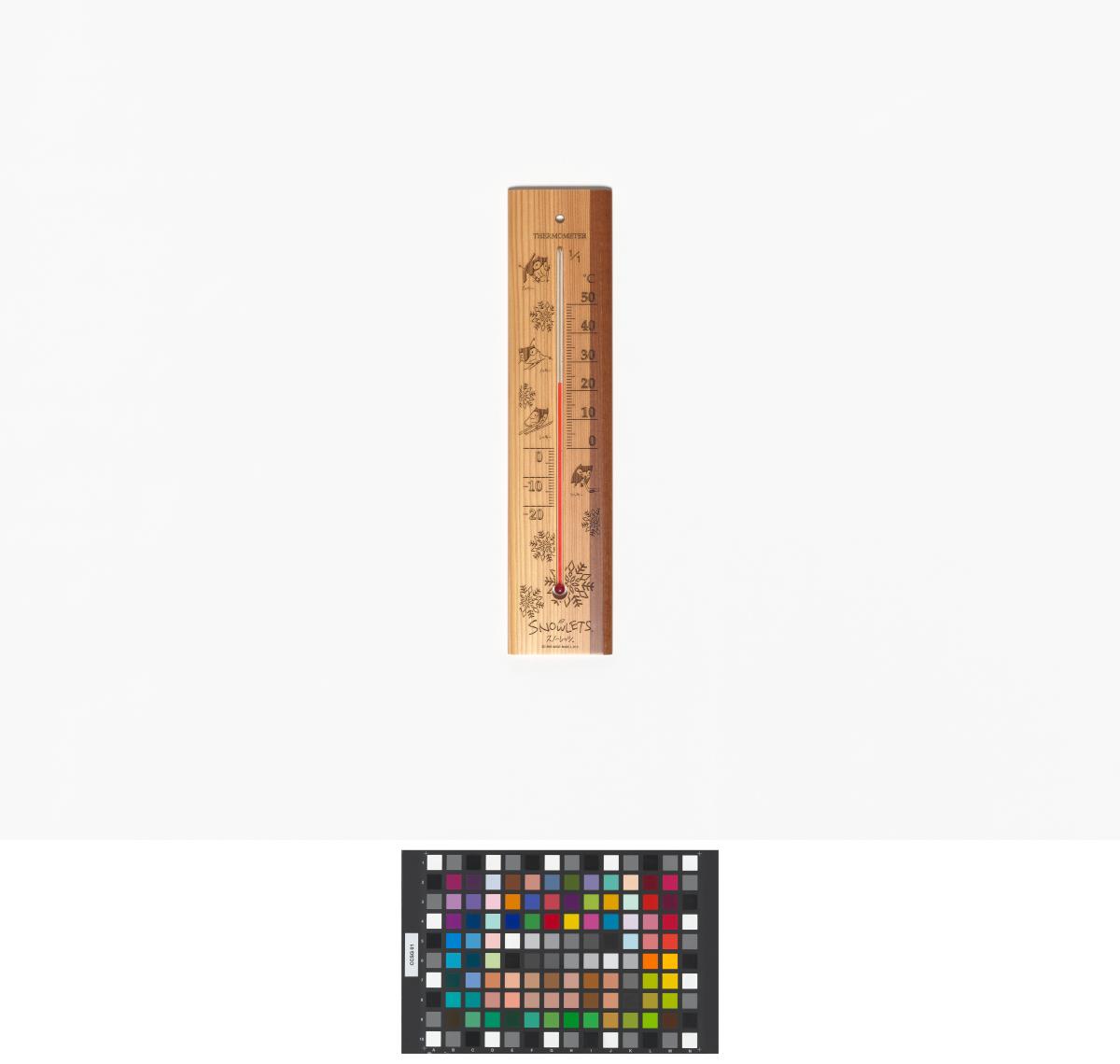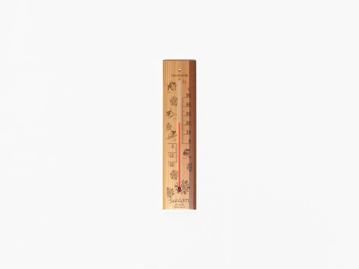 Thermometer in degree Celsius, with the Snowlets and snowflakes. On the lower part the inscription: "Snowlets" and it's translation in japanese writing.