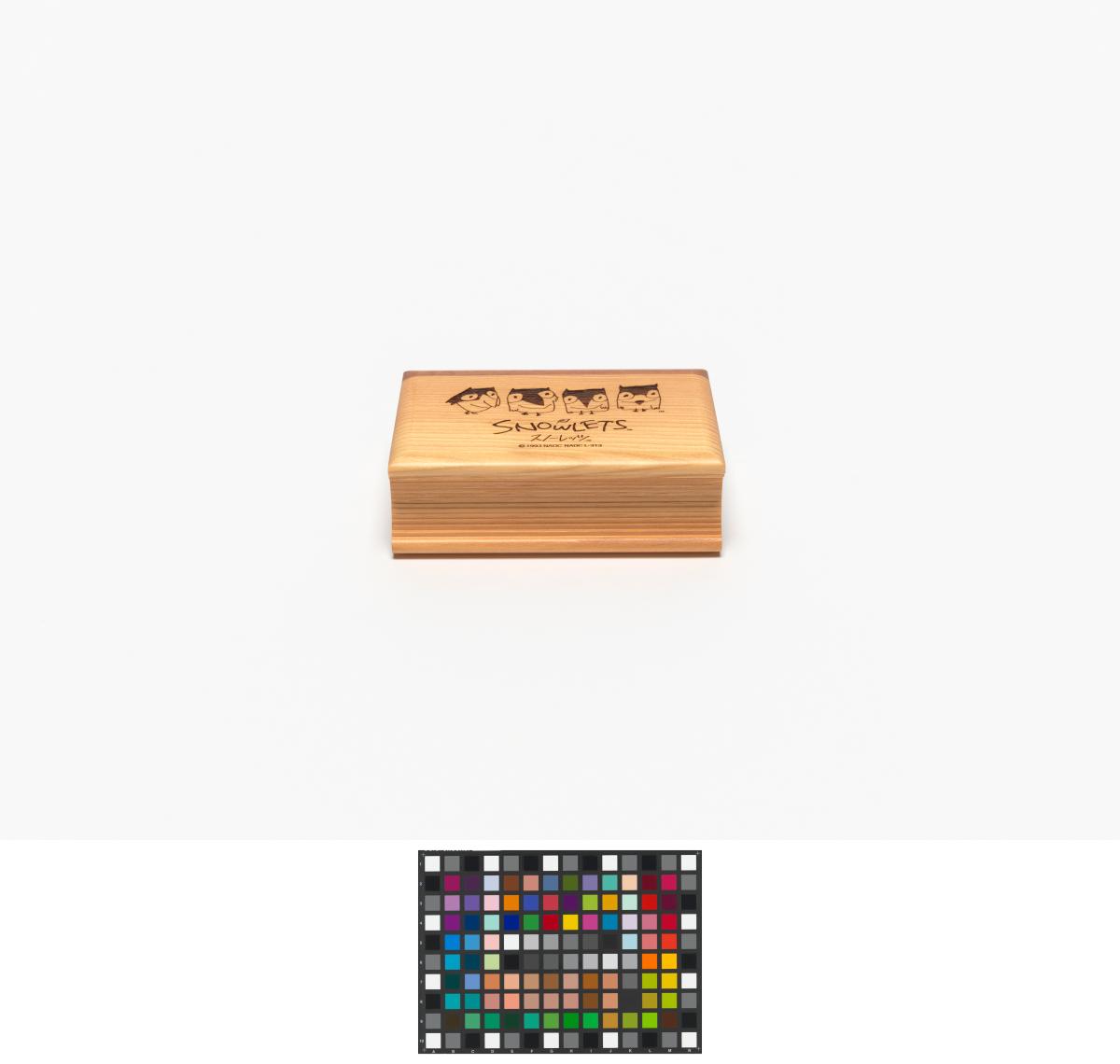 On the lid, the four engraved Snowlets and the caption: "Snowlets" with it's transcription in Japanese.