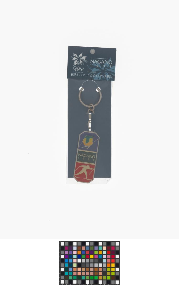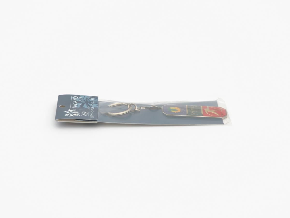Nagano 1998, key ring with one of the Snowlets cross-country skiing and the cross-country skiing pictogram.