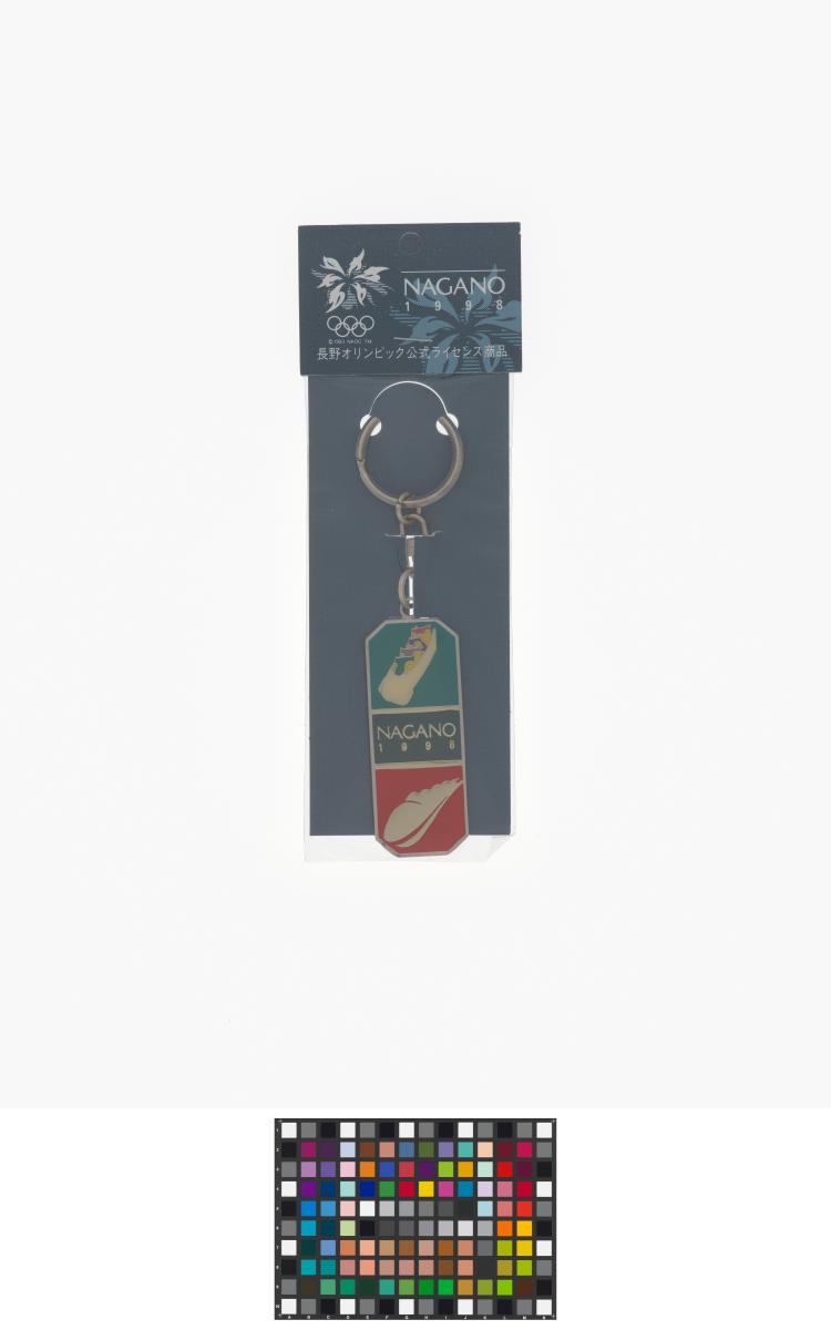 Nagano 1998, key ring with the Snowlets, the Games' mascots, bobsleighing and the bobsleighing pictogram.