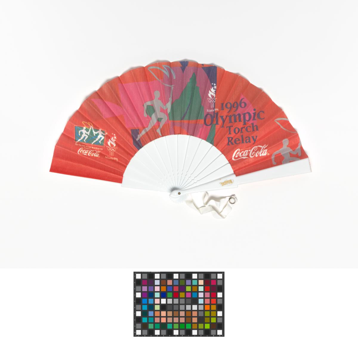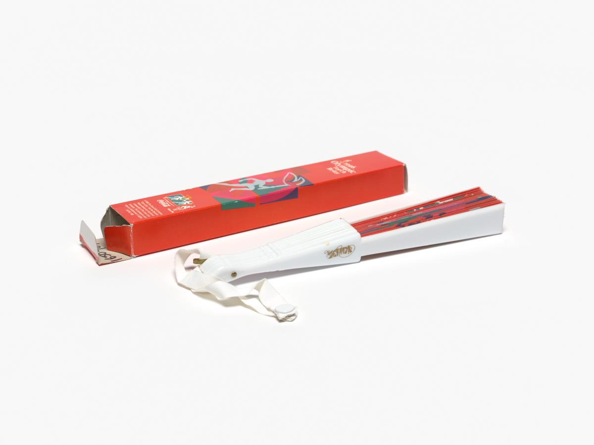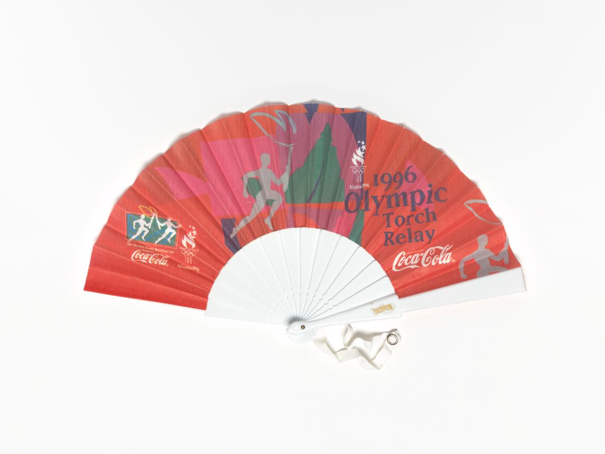 Atlanta 1996, fan with the Olympic Torch relay pictogram.