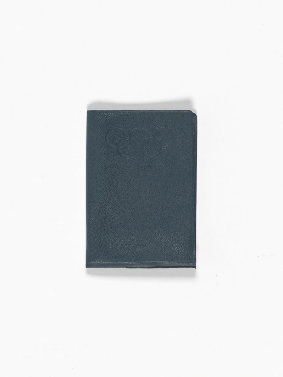 Helsinki 1952, leather wallet of the German Olympic team with the Olympic symbol.