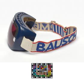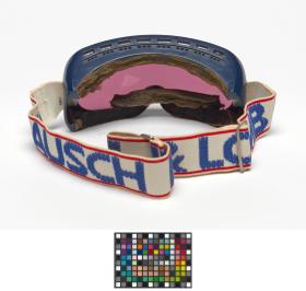 The headband has in large print "Bausch & Lomb". Tinted glasses.
