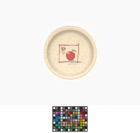 On the back of the plate, the drawing of an apple and the Games' emblem.