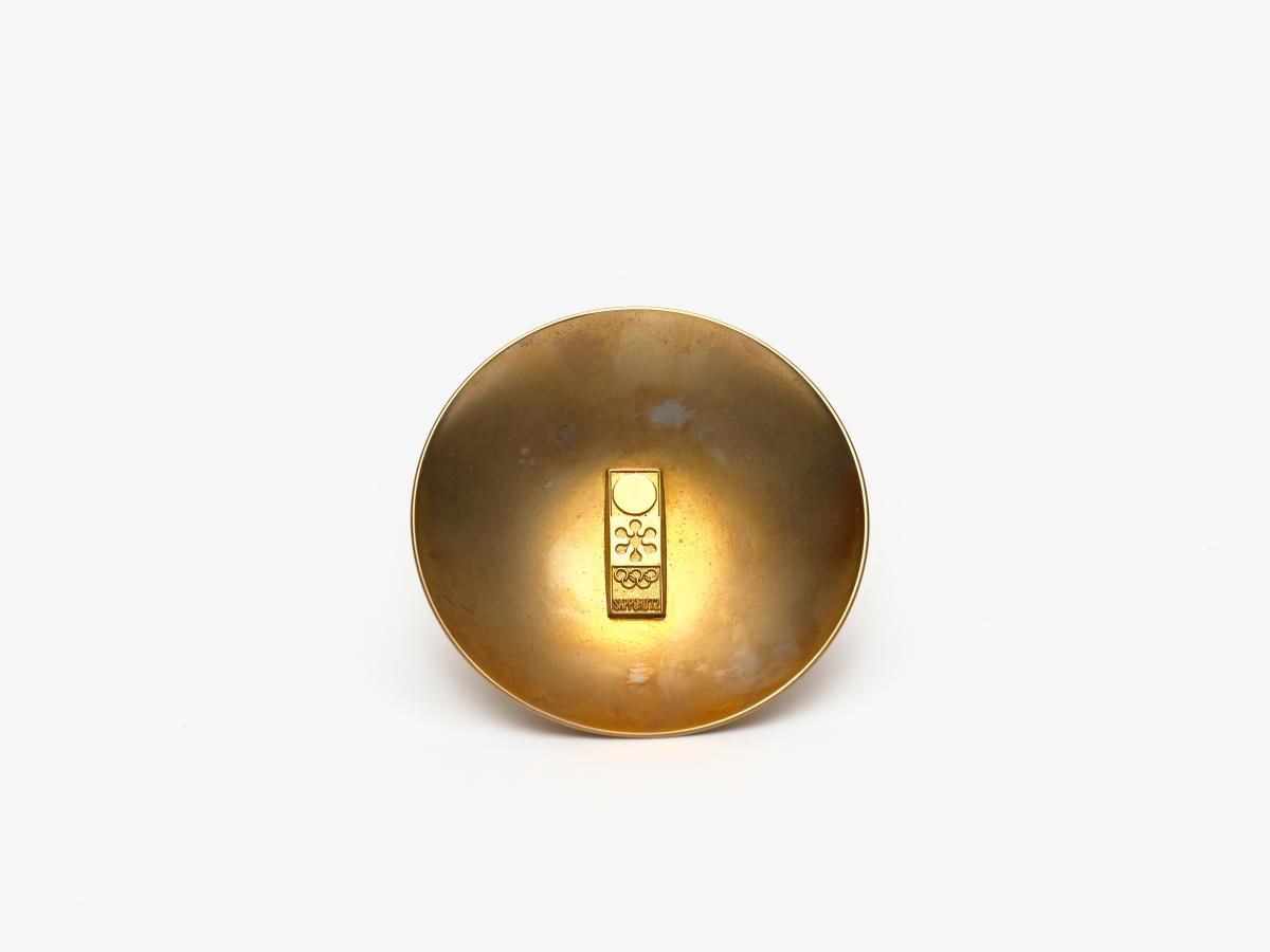 Sapporo 1972, gilded sake cup with Games' emblem.