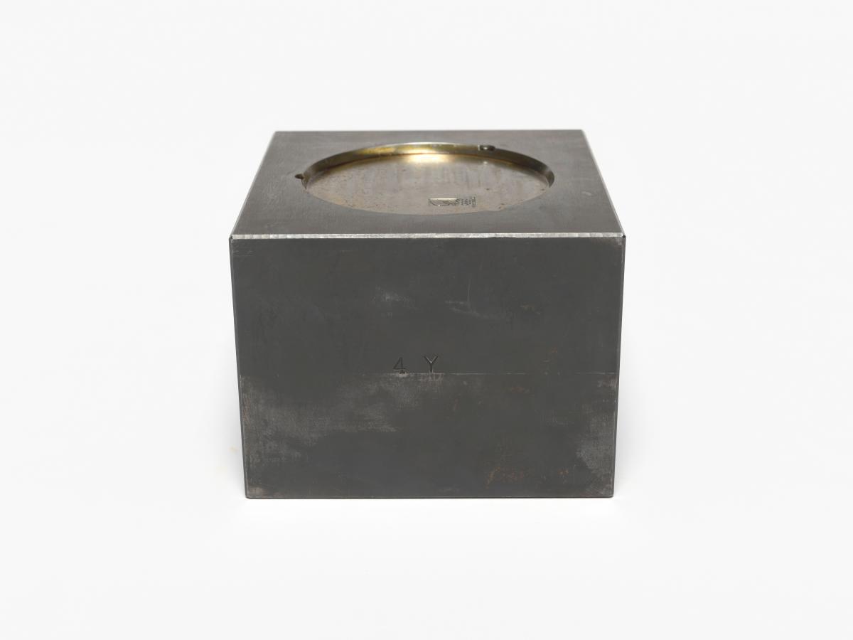 Square die with the negative of the metalic reverse: log of the OG.