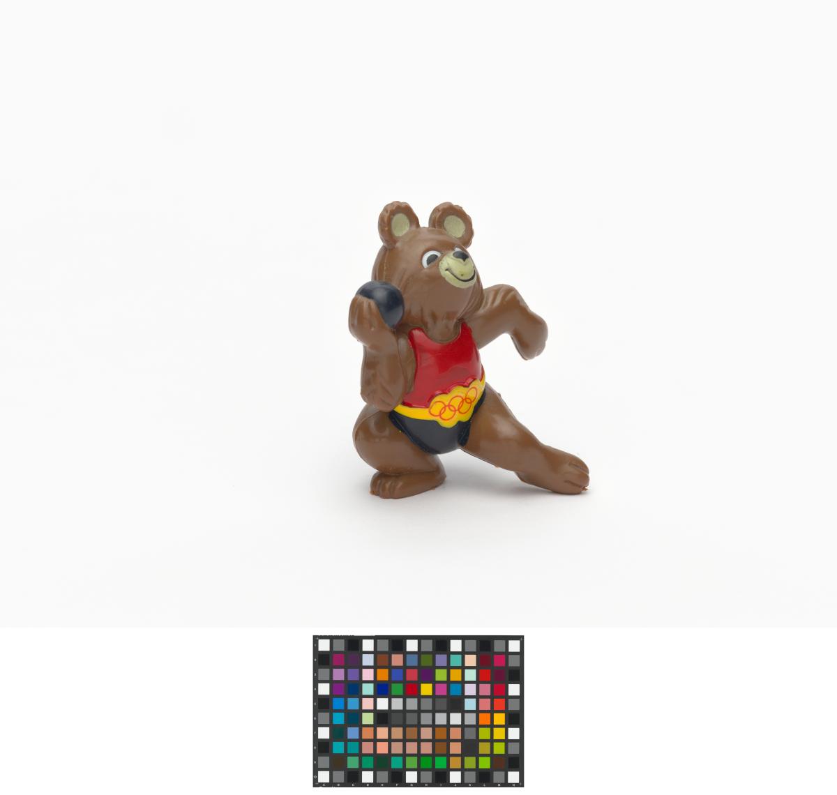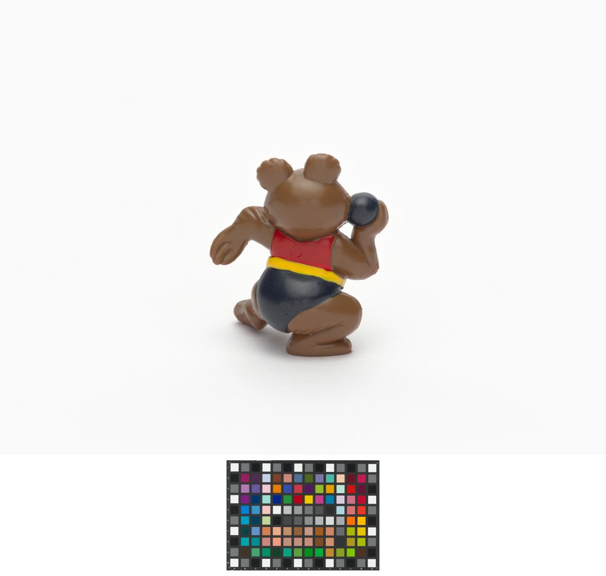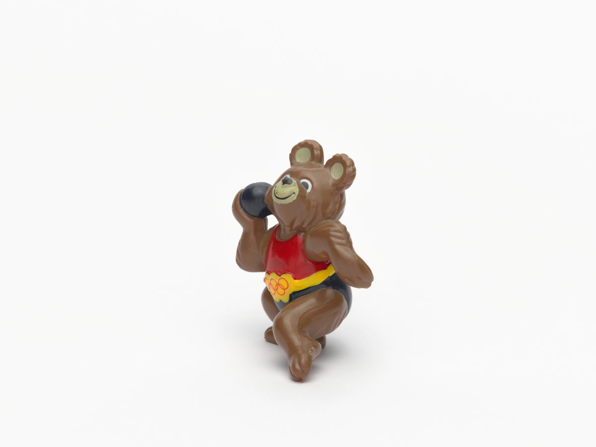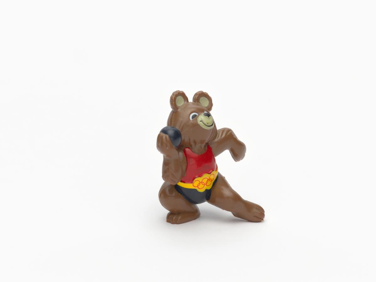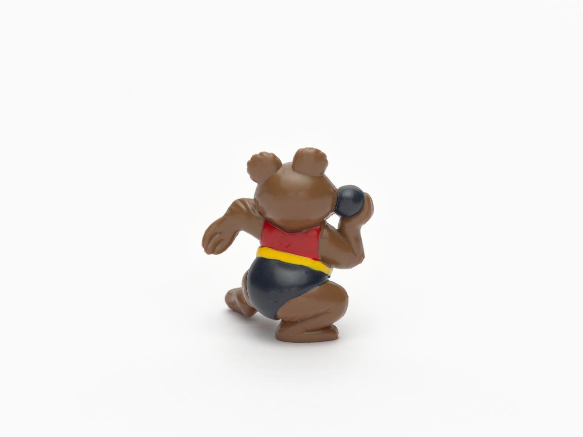 Moscow 1980, figurine of Misha, the Games' mascot, weight throwing.