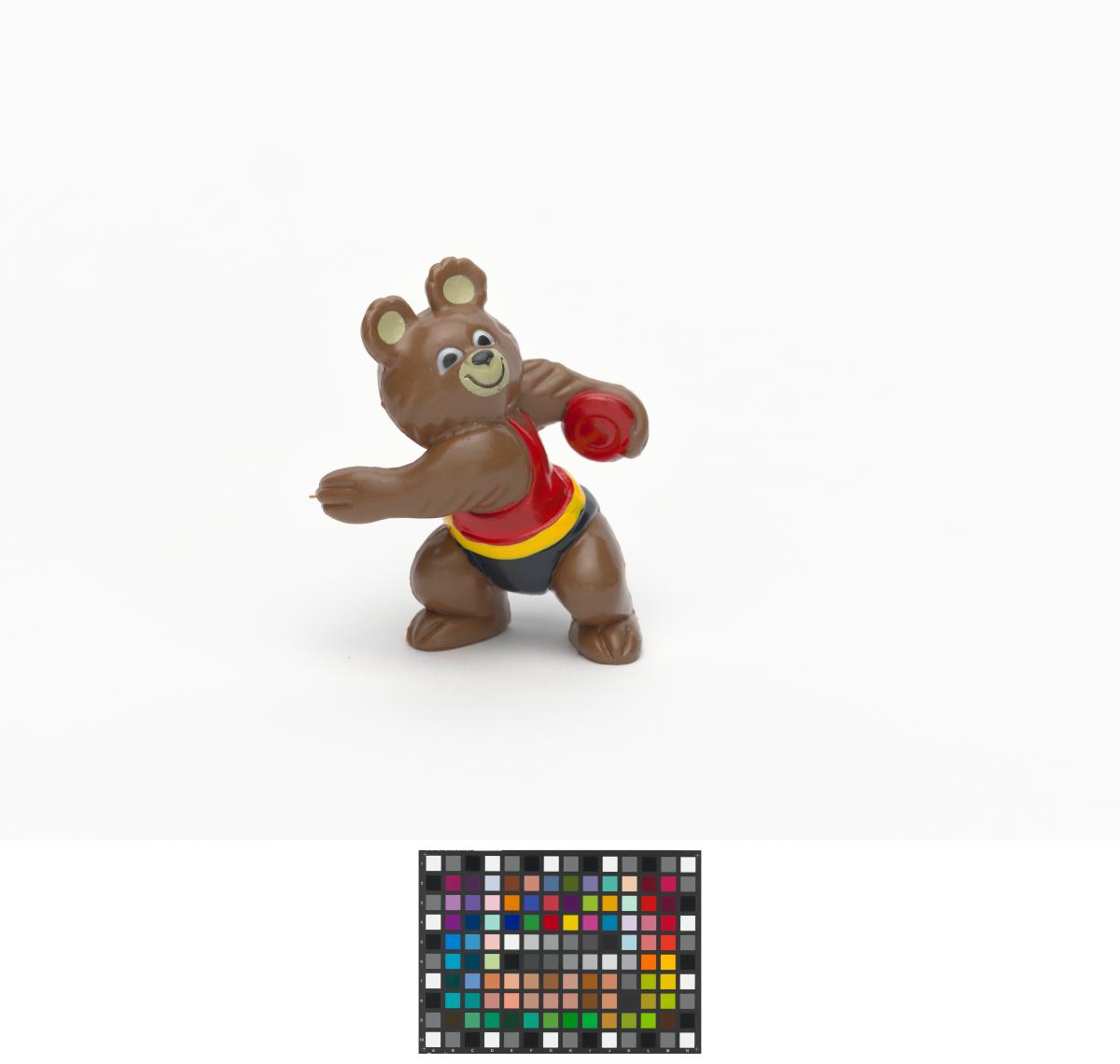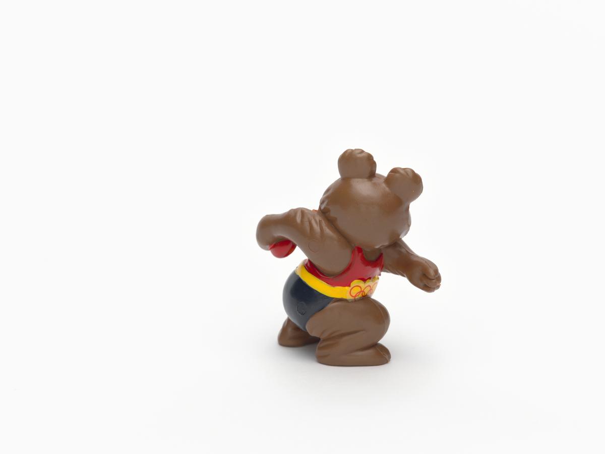 Moscow 1980, figurine of Misha, the Games' mascot, as a discus thrower.